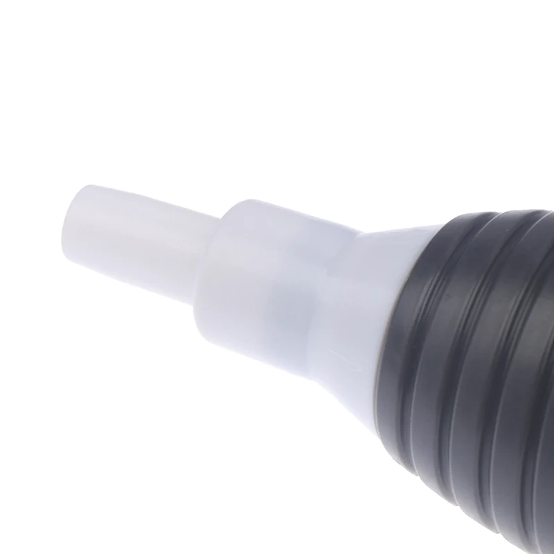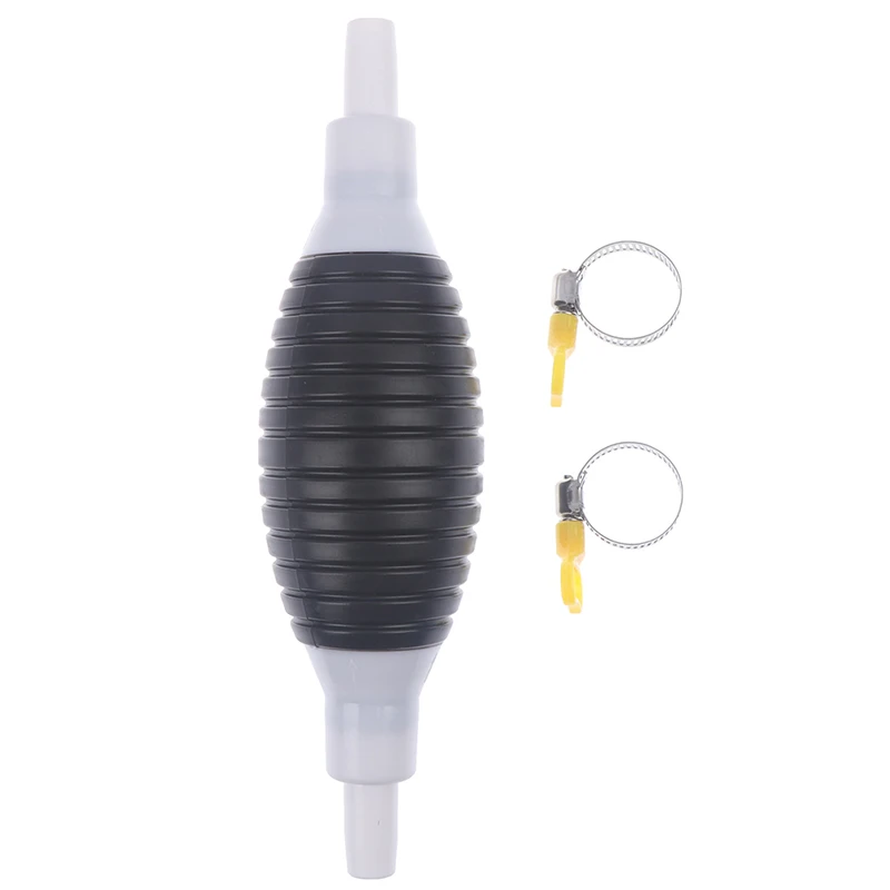 Резиновый ручной насос, который быстро начинает откачивать жидкость. Длинный и толстый прозрачный шланг из ПВХ устойчив к маслам и высоким температурам. Он оснащен двумя желтыми фитингами, которые увеличивают герметичность шланга, и шаровым насосом для предотвращения боковой утечки.
