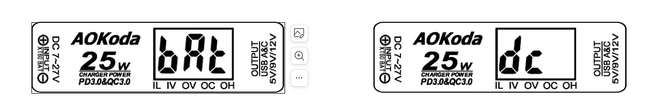 Дисплей, отображение входного напряжения батареи, выходное напряжение USB, выходной ток USB.