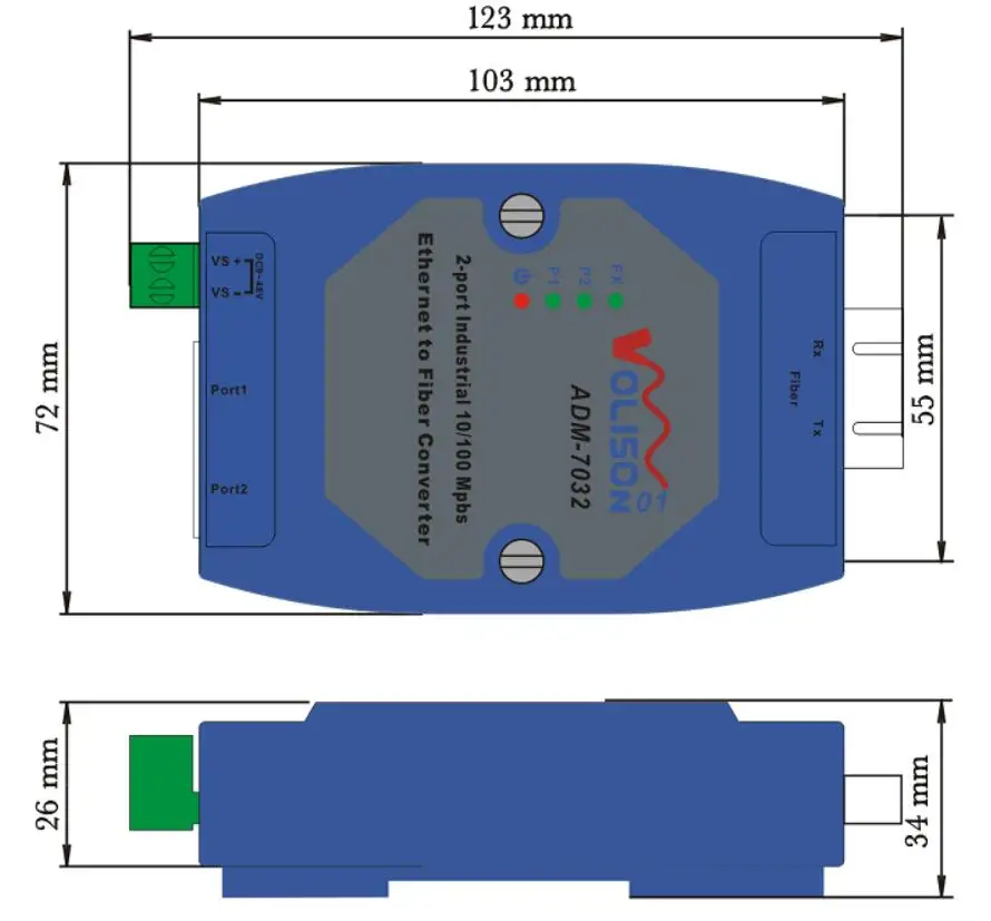 ADM-7032-это промышленный 3-портовый порт начального уровня (1-портовое оптоволокно И 2-портовый 10/100 Мбит/с RJ-45) коммутатор Ethernet, поддерживающий IEEE 802,3/802.3u/802.3x с портами RJ45 10/100M, полнодуплексным/полудуплексным интерфейсом, MDI/MDIX с автоматическим распознаванием.