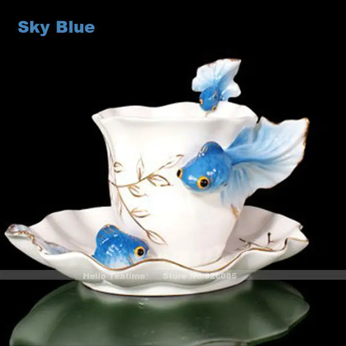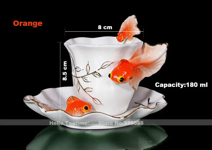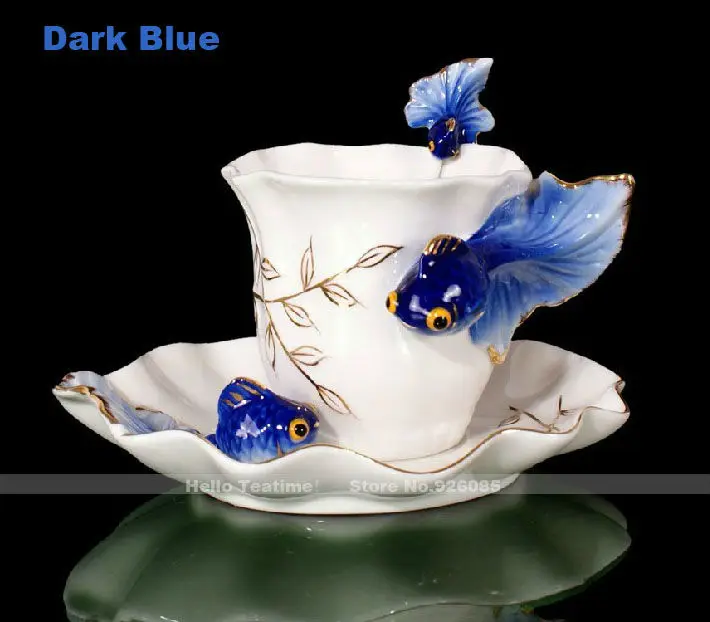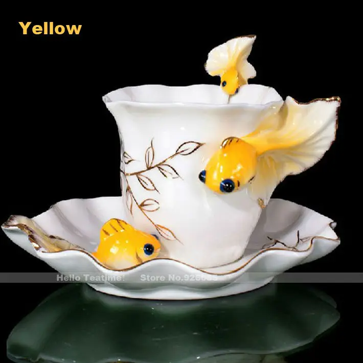 180 мл эмалированная фарфоровая Золотая рыбка кофейная кружка, 1 чашка + 1 ложка + 1 блюдце