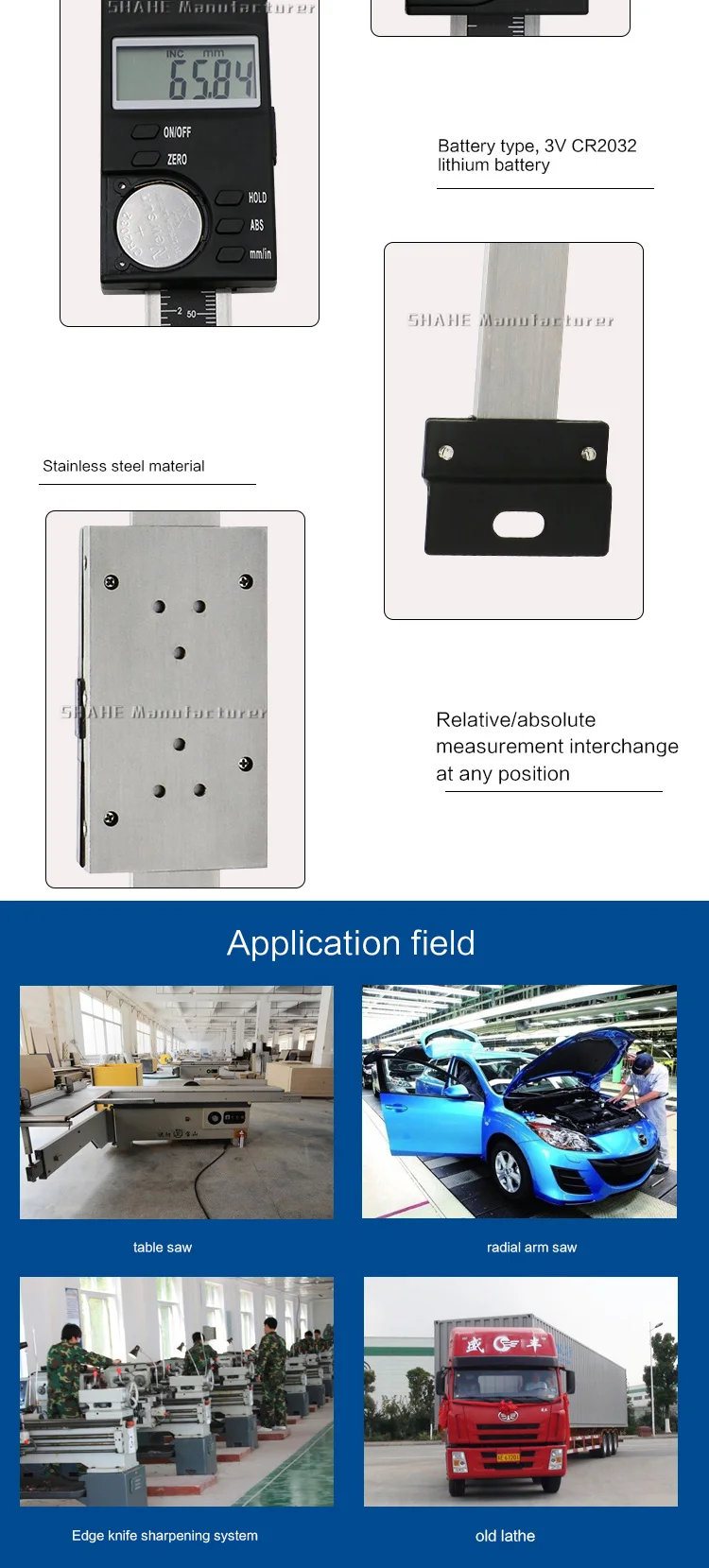 1. Материал из нержавеющей стали, прочная и надежная работа 2. С монтажными кронштейнами на обоих концах и монтажными отверстиями сзади 3. Быстрый дисплей измеренного значения на большом ЖК-экране 4. С выключателем питания и автоматическим выключением для опции 5. Пять функциональных клавиш 6. Функция удержания данных 7. Скорость измерения 3 м/с 8. Нулевая Настройка в любом положении 9. Конвертация измерительной системы мм/дюйма 10. Относительный/абсолютный обмен измерений в любом положении