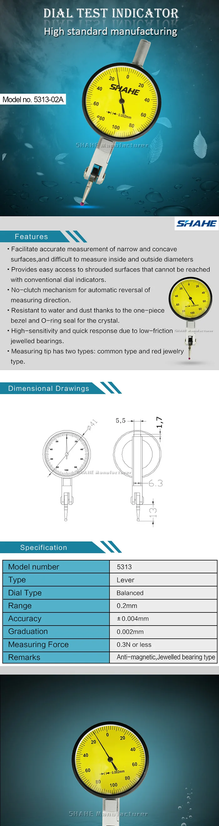 ★Характеристика 1. Облегчают точное измерение узких и вогнутых поверхностей, и трудно измерить внутренний и наружный диаметры 2. Использование специального устройства для достижения автоматического поворота измерительного направления 3. Измерительный рычаг Соединительный конец встроен в прецизионные шариковые подшипники
