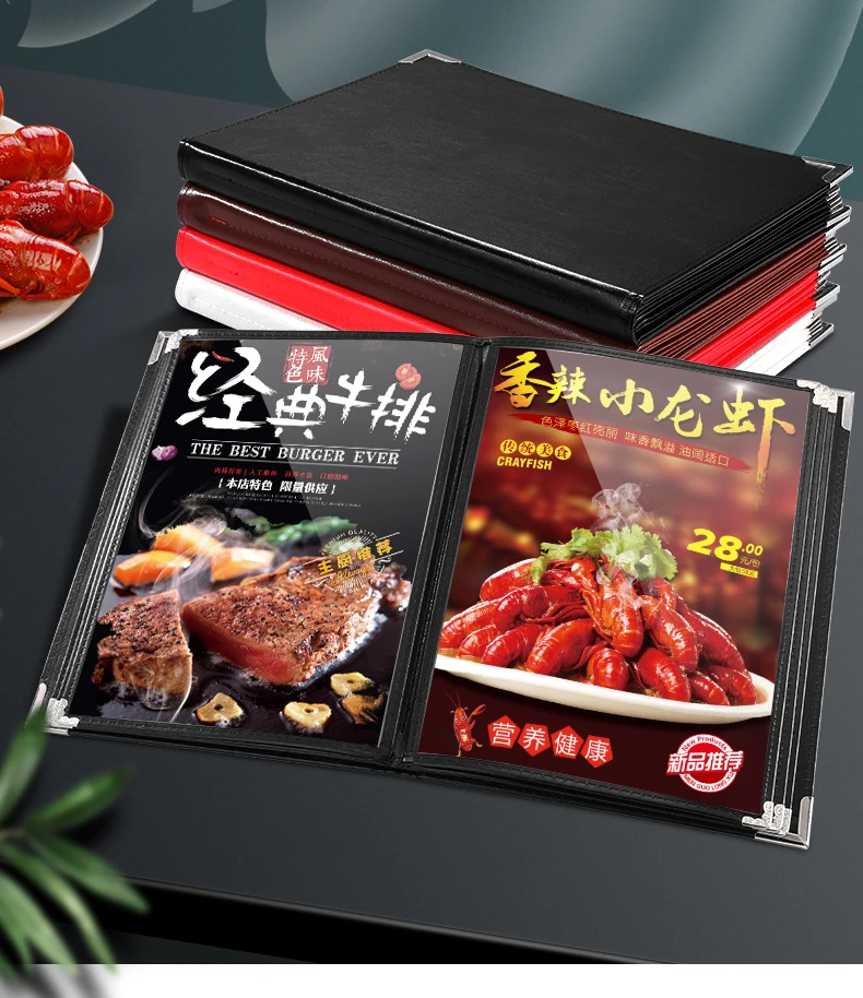 Твердый чехол A4 из искусственной кожи прайс-лист с прозрачным карманом из ПВХ Золотой коричневый черный красный белый