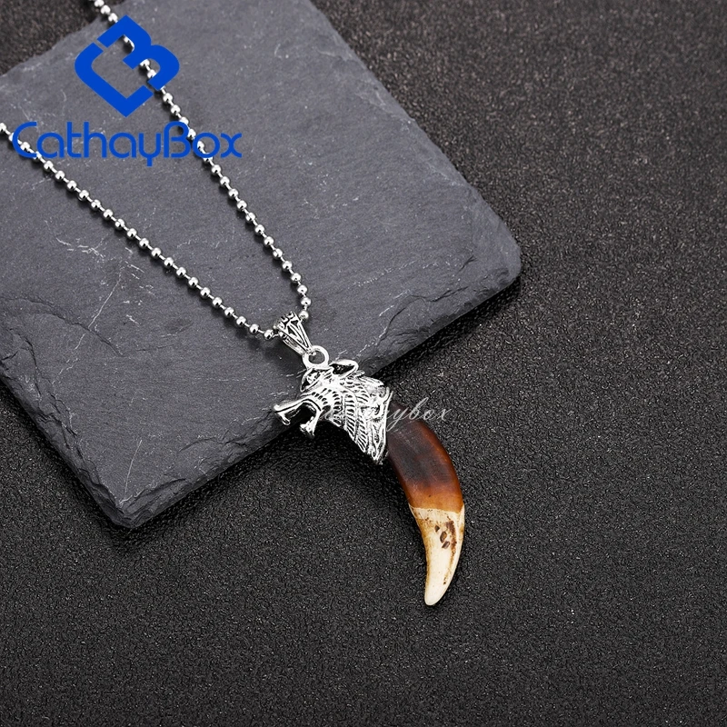 Описание товара: Материалы: зуб Цвет: коричневый, как на картинке. Без никеля и свинца. Вес: прибл. 11 г/шт. (только подвеска) Кулон Размеры: 5,7 см * 2,2 см прибл. Посылка включает в себя: один предмет в полиэтиленовый пакет. Шаровая цепь из нержавеющей стали: Длина 60 см