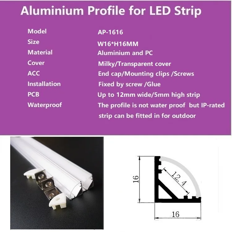 Светодиодный алюминиевый профиль для светодиодной лампы-10 шт./лот, 1 м/катушка * Номер товара: CC-16 * 16 * Размер: l1000xw16xh16 мм * Материал: алюминиевый корпус + чехол из поликарбоната * Ширина печатной платы: 5-12 ммАксессуары: