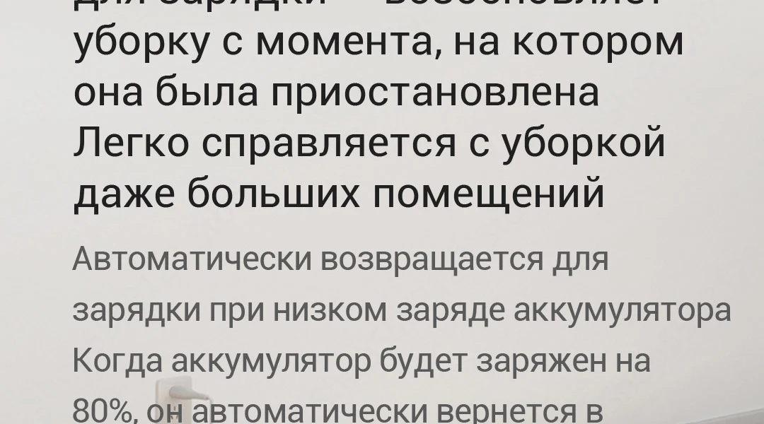 ● Визуальная динамическая навигационная система Быстрый захват координатной информации, извлечение сложных пространственных функций, сохранение динамических исследований во время путешествий, более точное и эффективное отображение. ● Взьем + 4-х ядерный Процессор Более вычислительный, способный найти точное положение робота в режиме реального времени и разумно нарисовать рабочий путь. ● Резервуар для воды объемом 200 мл Точный контроль воды, влажное сопротивление чище. ● Мощное всасывание 2500 Па Оснащен бесщеточным двигателем, отрегулируйте дизайн воздуховода, легко поглощает частицы пыли. ● Всасывание подвески + мощная основная щетка Большой диаметр всасывающего отверстия Подвески, близко к земле. ● Высокая точность Сенсор 15 типов разнонаправленных датчиков, чувствительных к различным комплексным средам, легко избежать препятствий. ● Пульт дистанционного управления с приложением Mijia Назначение уборки, не дома также может контролировать. ● 20 мм пересечение препятствий Легко поднимается по порогу, рельсам, ковру. ● Тонкий корпус 8,2 см Легко перейти на дно кровати, шкафа и дивана. ● Автоматическая зарядка Автоматически заряжается при менее чем 15% заряда батареи. Когда аккумулятор заряжен до 80%, вернитесь в положение выключения питания и продолжайте подметать.