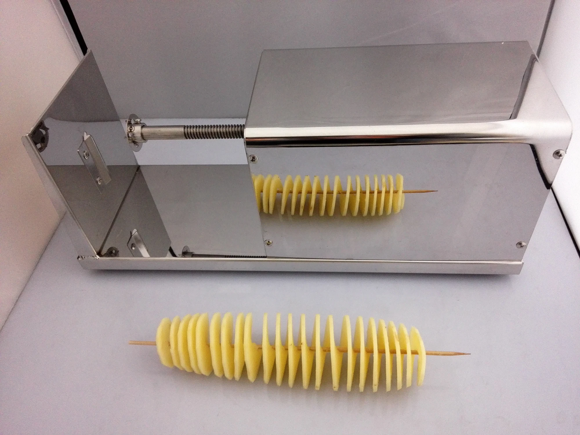 best choice products presents this new spiral potato cutter. Make curly fire, twisted potato chips and vegetarian snacks made of stainless steel built potato slicer. It has a tornado or spiral cutting edge which is great for use at home or in a restaurant. These chips spiral cutter is a great product to use at home, restaurants and hotels. Sell it at carnivals, concessionaires, parks, etc. We have to buy our products directly from the manufacturer, so you know that the best prices. New product with FACTORY PACKAGING (not used or refurbished) featuers: Stainless steel construction Low maintenance Non-slip rubber feet Ease of use SPECIFICATIONS: Power: 50W Blade x2 pcs Kabob Sticks: 16 " Dimensions: 470x200x210mm Handle and cutter: 11.5 " Center Cutting range: 7 "(L) x 4.5" (W) x 4.5 "(H) Weight: 6KG Method for making: 1 select fresh whole potatoes into potato, each need to achieve weight 220g gold weight ratio 2 bamboo into a potato, then fresh potatoes into potato tower, the machine will cut potato rotation, becomes a rotary cut potato! 3 then along the bamboo stick a piece of the rotary cut potatoes have been cut off pull string, which is after the completion of the rotary potato tower, 4 and then to 180 degree temperature and the fried! 5 freshly fried into a rotary potato tower, according to various tastes, and a variety of special flavor changes in a variety of flavors! 6 select each potato weight should be 220g, mainly because the potato if too small, can cause potato fried will shrink after, will taste dry! If too large, not cooked potato, more water and more sticky taste! 7 Select super palm oil salad oil can replace oil resistant, good, fried not black smoke, have high heat, not easy to characteristics of coke, low attachment! Because it has characteristics of low attachment, it will not cause the product itself too much oil production, taste does not feel greasy! Don't eat too much fat, very crisp and delicious! Even vegetarians also can rest assured that food! 8 rotating potato tower features: rotary potato tower after 180 degrees temperature, taste very crisp. Crisp. Sweet. Sweet! Fusion crystallization rock salt and black pepper aroma, and with various spices to form a variety of tastes