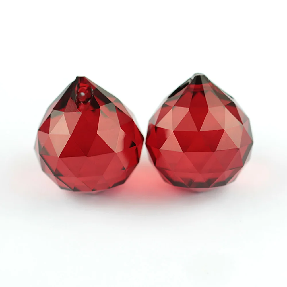 2 шт./лот 20 мм темно-красный хрустальный стеклянный граненый шар металлический крюк висящий призмовый шар X-mas граненый шар