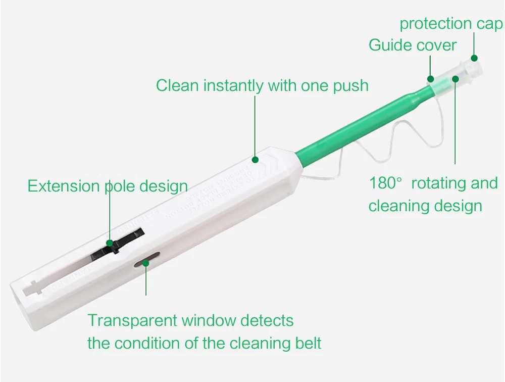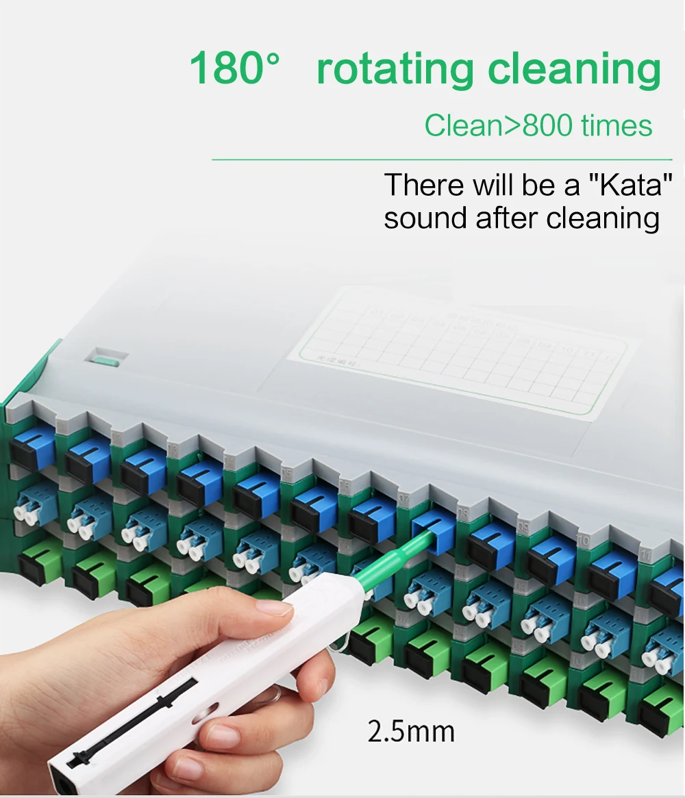 Мини разработан специально для хорошей работы с разъемами LC и MU, этот инструмент очищает торцевые поверхности обжима, удаляя пыль, масло и другой мусор, не порезая и не царапая торцевую поверхность.