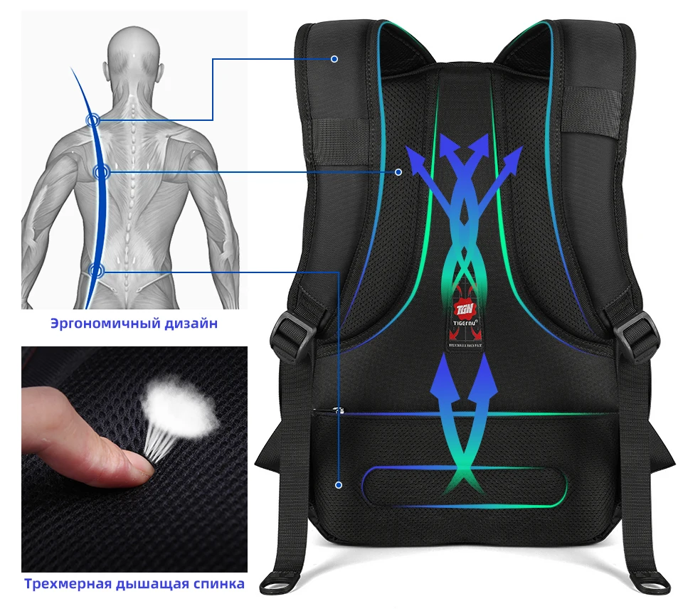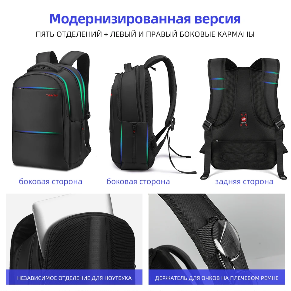 1. С отдельным отделением для ноутбука, подходит для 14 или 15,6- дюймового ноутбука 2. Большая емкость, с множеством организованных карманов и сумок 3. Изготовлен из прочного, стойкого к царапинам, брызгозащищенного материала ткани Оксфорд 4. С эксклюзивными четырехзубыми противоугонными молниями Tigernu
