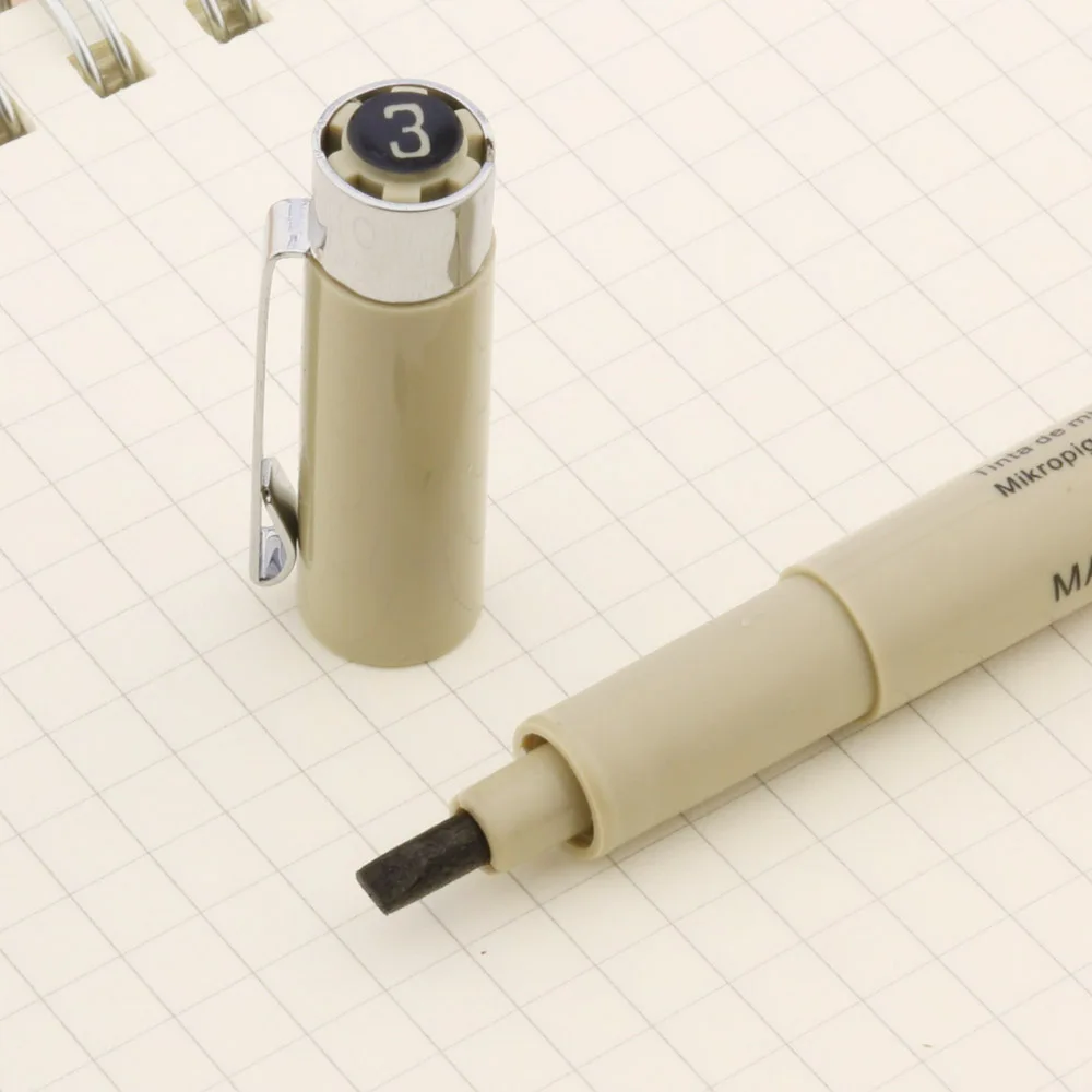 Технические качества включают в себя чистую качественную чернил Pigma, ее водонепроницаемость, выцветание и химическую устойчивость