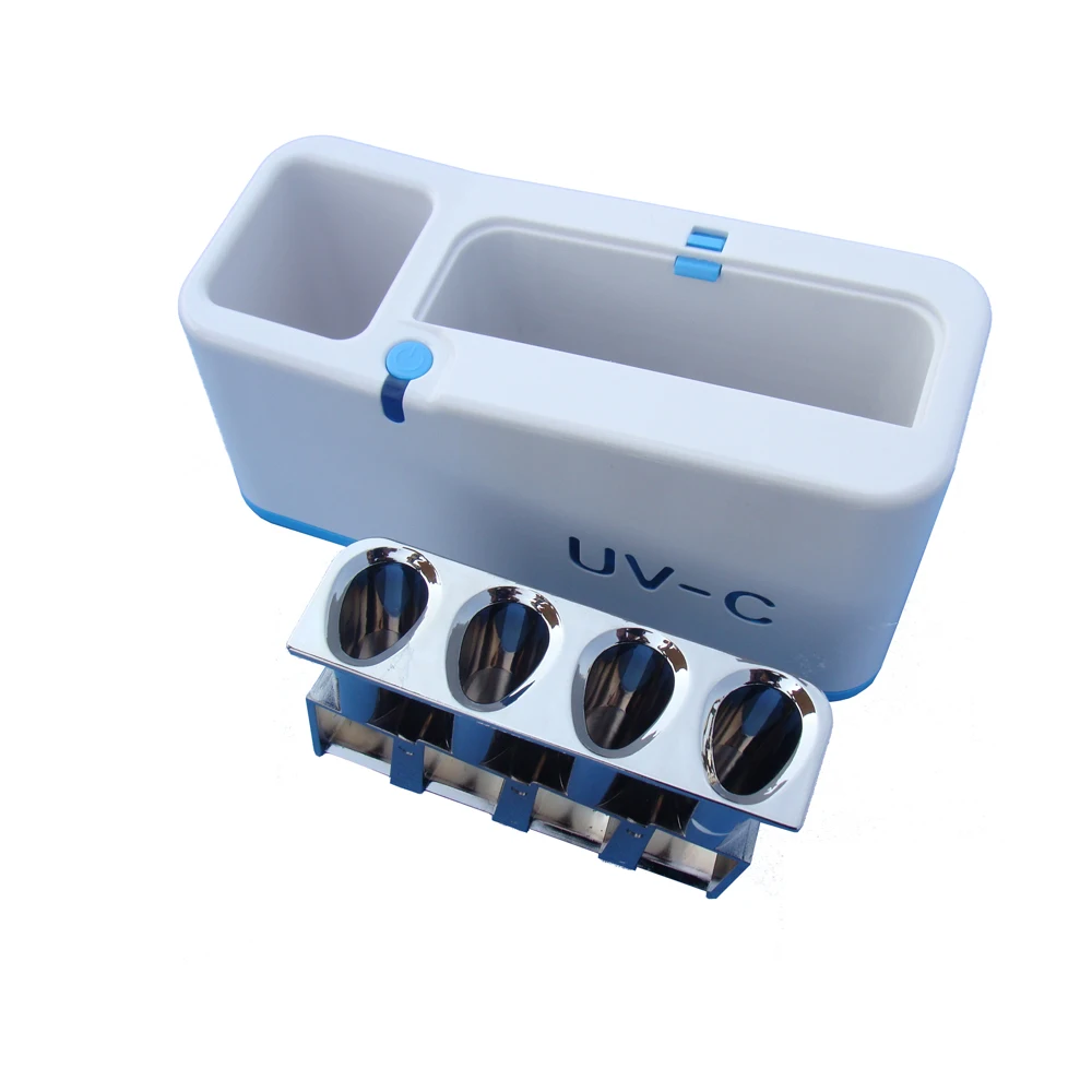 • Стерилизует 4 зубные щетки и зубную пасту вместе. • Бактерицидная УФ-технология убивает до 99.9% микробов и бактерий. • Питание от одного подключения USB 5 В или от 4 батареек AA 1,5 в (батарея в комплект не входит). • Он может работать с компьютером любым USB зарядным устройством от мобильный телефон и внешнего аккумулятора. • Кнопка запуска в одно касание, функция автоматического отключения. • С предохранительным выключателем. • 5 Минут автоматического таймера просто нажмите кнопку. • Стерилизатор можно разобрать, удобно чистить. • Функция безопасности: при открытии, перемещении или падении свет UV-C автоматически выключится.