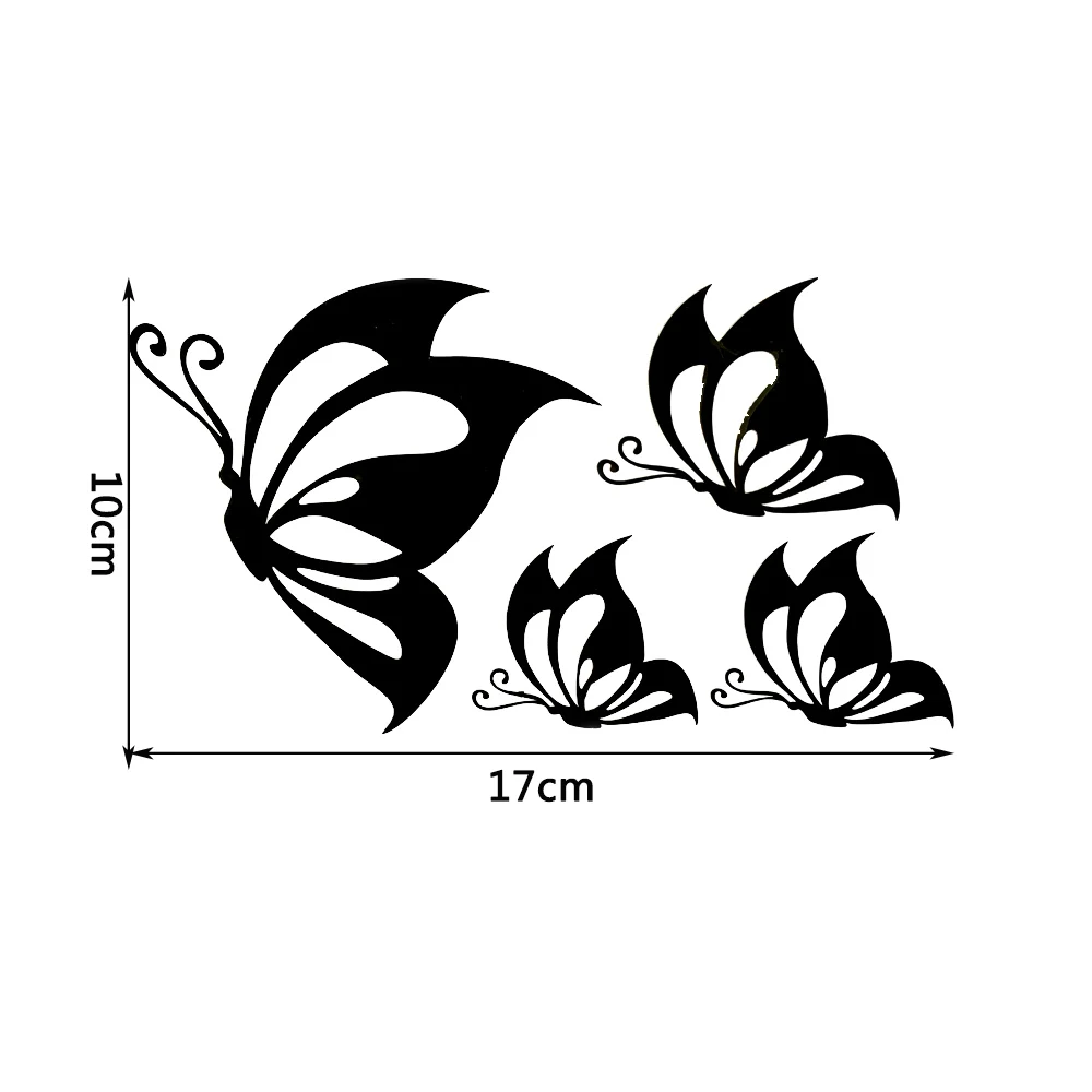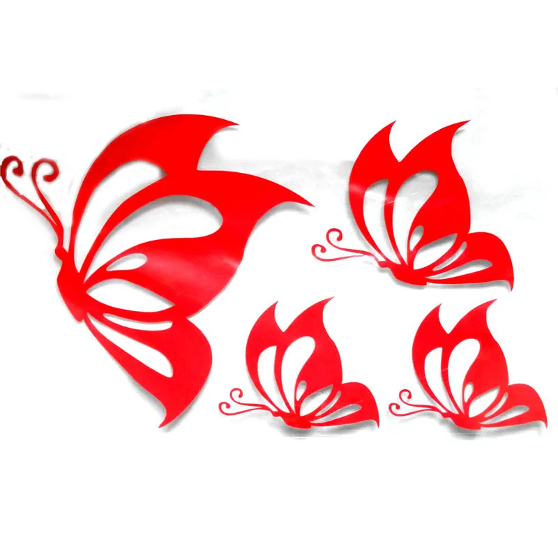 4 шт. бабочка в 1 лист Материал: отражающий винил Цвет: серебристо-белый, черный, красный и оранжевый Размер 1 листа: 33х19 см