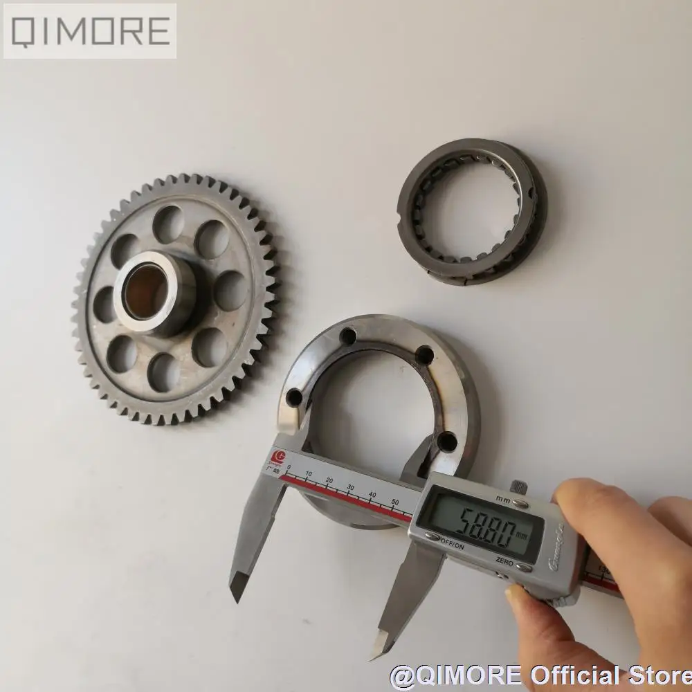 Внешний диаметр сцепления стартера: прибл. 91 мм Внутренний диаметр сцепления стартера: около 59 мм Межцентровое расстояние между муфтой стартера и соседними отверстиями: 38 мм Толщина сцепления стартера: 13 мм Внешний диаметр маховика: около 129 мм Диаметр внутреннего отверстия маховика: 25 мм Количество зубьев маховика: 49T Применение: Горизонтальные двигатели с водяным охлаждением 250cc, такие как скутер Majesty YP250, Linhai VOG 250 257 260 AEOLUS,BMS 260, Diamo 257, Xingyue XY260T-4 и т. д.
