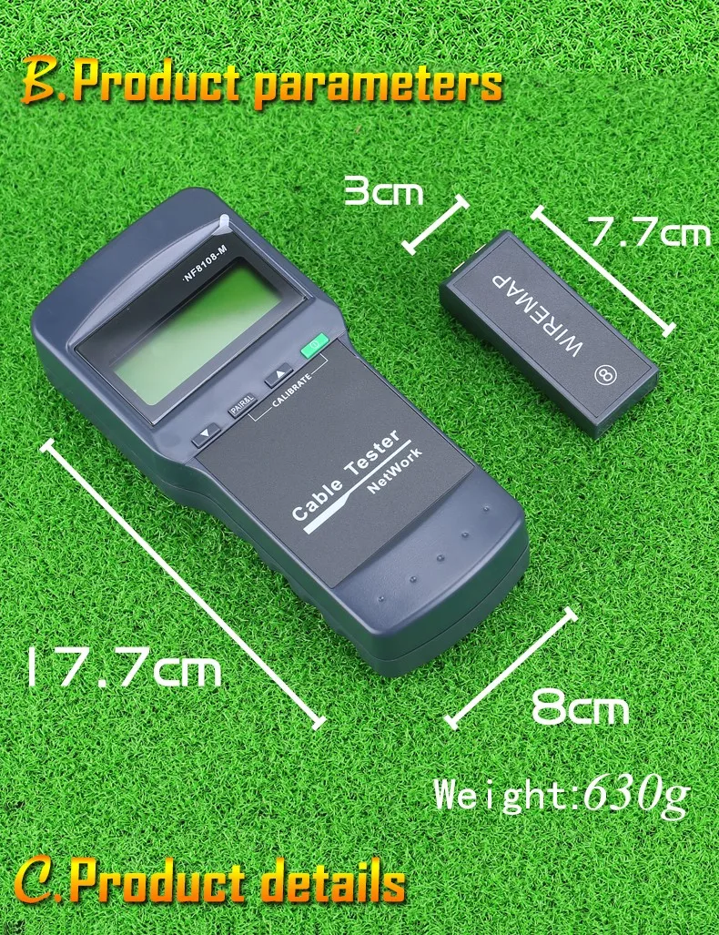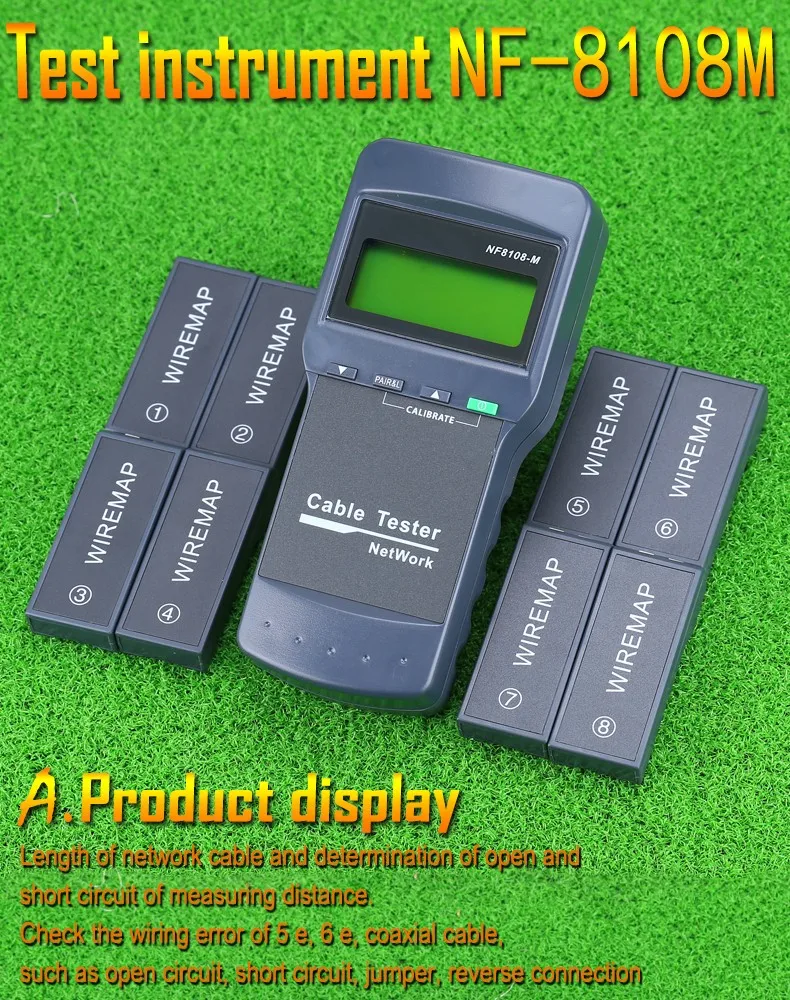 Особенности 1. Измерьте длину сетевого кабеля и определите расстояние открытия и короткого замыкания. 2. Проверьте ошибку проводки в 5E, 6E, коаксиальный кабель, такой как открытая цепь, короткое замыкание, перемычка, обратное соединение. 3. С 8 удаленными идентификаторами, более легко работать. 4. Портативный блок с длительным сроком службы батареи (чехол ожидания 50 часов). 5. Автоматическое отключение с задержкой времени. 6. Самопроверка и автоматическая компенсация любого изменения емкости аккумулятора или температуры окружающей среды Посылка включает в себя: Тестер сетевого кабеля-1 шт. 8 x дальний тестовый домкрат (ID1 ~ ID8) Руководство по эксплуатации-1 шт. Технические характеристики Индикатор: LCD 53*25 мм Макс. Рабочий ток: ≤ 70 мА Макс. Расстояние карты кабеля: 1000мА Совместимые разъемы: RJ45 Выбор функций: 3 позиции в нижней части и 1 выключатель питания Неисправный ЖК-Дисплей: ЖК-дисплей Защита напряжения: 60 В переменного тока/42 В постоянного тока Низкий уровень заряда батареи: ЖК-дисплей (6,5 V) Батарея Тип: DC 4*1,5 V