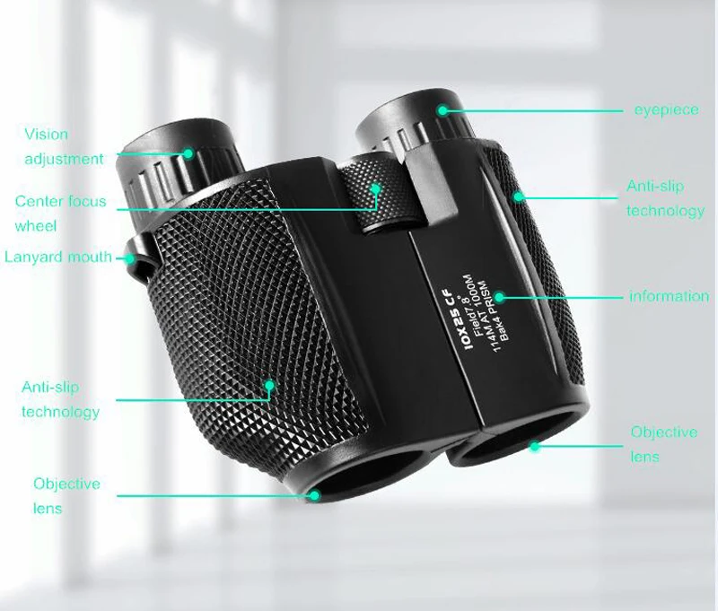 Хит продаж 10X25 бинокль HD Все-оптический высокой мощности водонепроницаемый телескоп с призмой Bak4 для путешествий бинокль прямая продажа