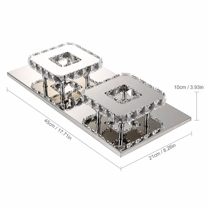 Материалы: светодиодный, кристалл, нержавеющая сталь Входное напряжение: 100 В-240 В переменного тока 50/60 Гц Источник света: светодиодный SMD Потребляемая мощность: 24 Вт Цветовая температура: 3000-3500K для теплого белого, 6000-6500K для холодного белого Режим управления: настенный выключатель Площадь освещения: 15 м ^ 2 до 20 м ^ 2 Применение: гостиная, столовая, кабинет, спальня, ресторан, лобби, другие