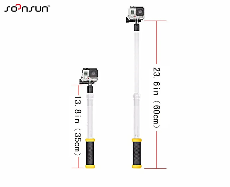 SOONSUN для Go Pro 12-24 "Плавающий удлинитель Поплавковый полюс дистанционная ручка Floaty монопод w/WiFi Пульт дистанционного управления зажим для GoPro Hero 4 3 + 3