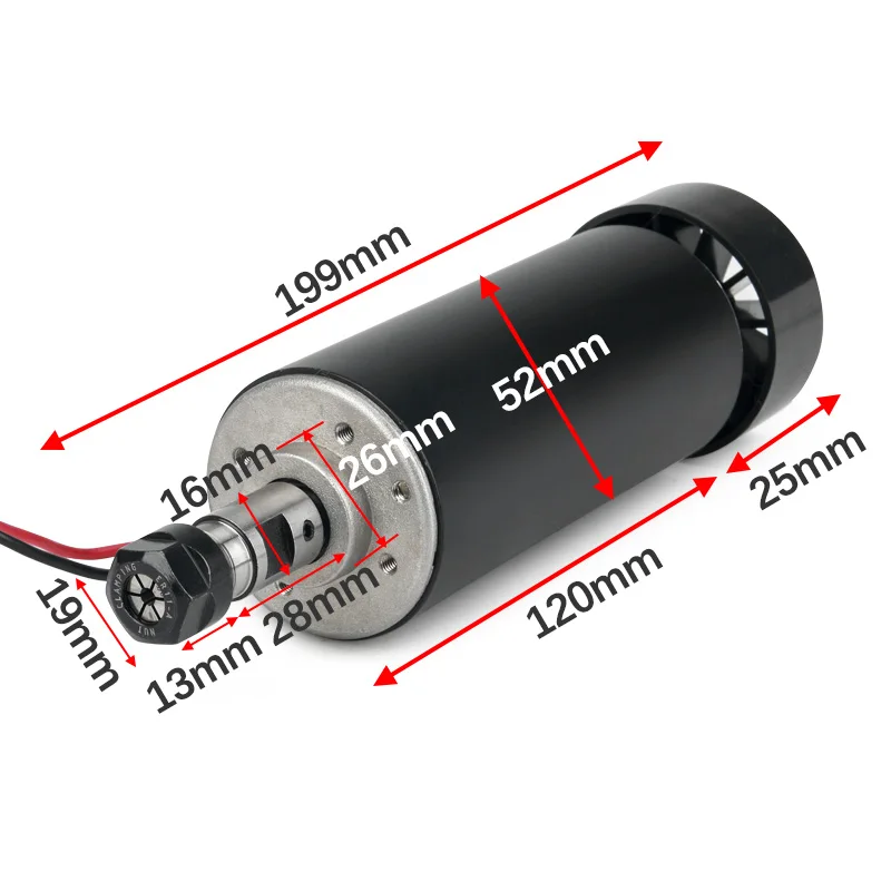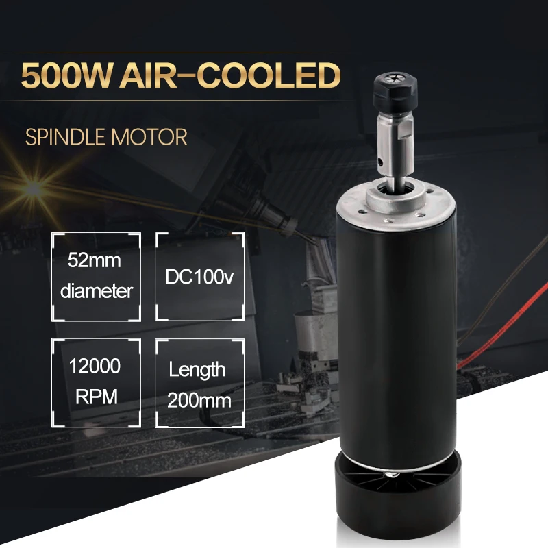 1. Шпиндель с воздушным охлаждением:Размер: 52 ммМощность: 500 ВтМаксимальный крутящий момент: 0,55 нмRunout off: 0,01 мм-0,03 ммРабочее напряжение: 100 В постоянного токаСкорость: 3000-12000 об/минВодяное охлаждение ER11 Цанга (3,175 мм)2. Источник питанияИсточник питания с регулятором скорости: (ручное регулирование скорости)Вход: AC220V ± 10% 50/60 ГцМощность Адаптера: 500 ВтПоддержка функции mach3Этот регулятор мощности может настроить 110/220v в соответствии с потребностями клиентов3,52 мм зажим:1x52 мм кронштейн + 4x винтыПодходит для: шпиндельного двигателя 300 Вт 400 Вт 500 ВтМодель: 52 мм кронштейн шпинделяДиаметр: 52 ммМатериал: алюминиевый сплав4. 13 шт. ER11:13 шт. ER11 Размер: 1 мм/1,5 мм/2 мм/2,5 мм/3 мм/3,5 мм/4 мм/4,5 мм/5 мм/5,5 мм/6 мм/6,5 мм/7 мм