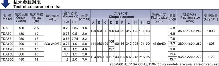 ТДА серии джакузи Ванна насос является наиболее зрелым продуктом и сертификат безопасности высоко завершена. Жидкостная часть изготовлена из высокоусиленного инженерного пластика. Применяемый тип механического уплотнения обеспечивает водонепроницаемость при длительной непрерывной работе. Высокоусиленное инженерное пластиковое основание является вибростойким и коррозионно-стойким. Жидкость будет сливаться после выключения двигателя.