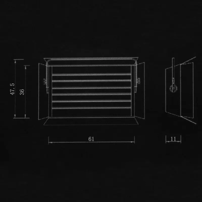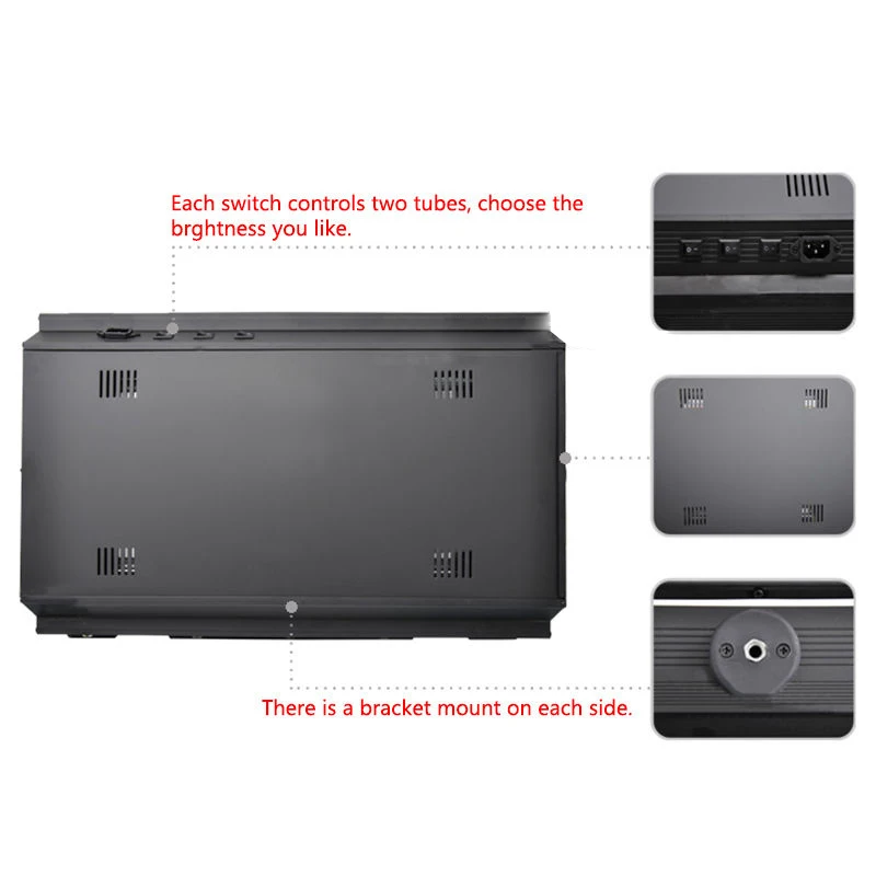 Описание: Три режима включения/выключения на корпусе. (Три переключателя управляют шестью банками). Напряжение питания: 220 В 60 Гц Эквивалент Hotlight 2000 Вт Высокий CRI-95 Четырехходовые двери сарая Дневного света 5400 K трубки включены Срок службы лампы 10 000 часов Размер светильника: 58х34х7 см Вес нетто: 5,5 кг Потребляемая мощность: 220 Вт Освещение (люкс): 2920/1 м, 925/2 м, 456/3 м