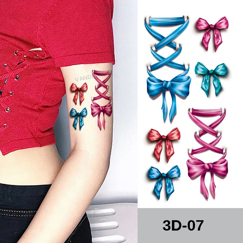 10x Nice 3D Body Art Sleeve Arm Hand Stickers Glitter Temporary Tattoos Small Bowknot Bows Waterproof For Body Painting Gift