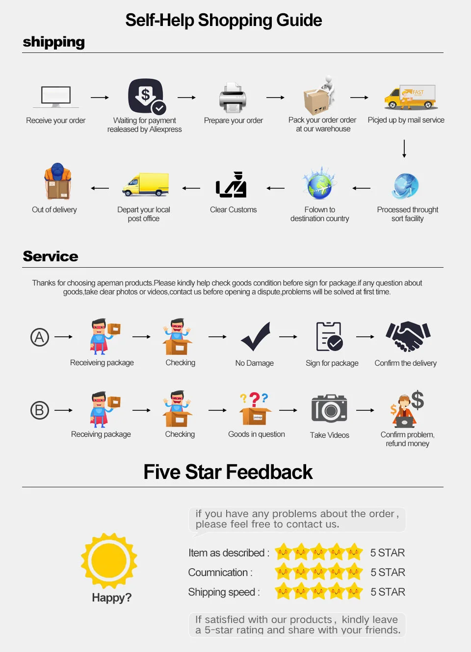 Покупатель несет ответственность за возврат стоимости доставки. Мы будем нести ответственность за почтовые расходы по замене.Возврат будет произведен после получения возвращенного товара