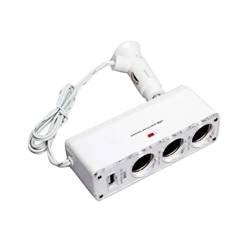 1 х трехполосный автомобильный прикуриватель (разветвитель гнезда прикуривателя + usb-порт)
