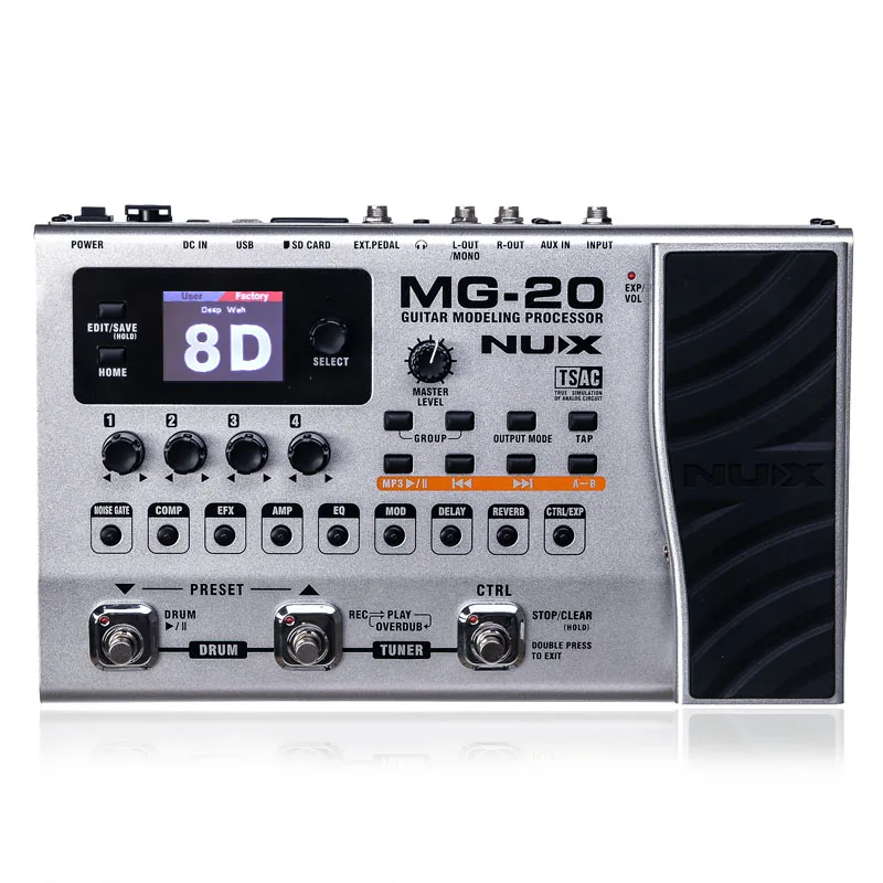 MG-20-это пол Гитарный процессор с 32-битной поплавковой точкой DSP, оснащенной и истинной имитацией аналоговых схем (TSAC). До 60 моделей, петлитель 60-х, барабанная машина на основе образцов и MP3/WAV-плеер, утонченный пользовательский интерфейс и большой Красочный ЖК-дисплей, MG-20-это профессиональное решение для гитариста, который хочет хорошего тона и функций. Многофункциональная педаль CTL позволяет переключать эффекты включения и выключения, увеличивать громкость для соло, коснитесь времени задержки и скорости модуляции или воспроизведения/остановки бэк-трека! С выдвижной педалью и встроенной педалью выражения вы будете иметь превосходный контроль на сцене! Множество возможностей! С помощью USB-порта вы сможете обновлять систему и редактировать тон на компьютере! Особенности: Большой 2,4 дюймовый цветной TFT LCD Барабан и фраза петля машина Встроенный тюнер Новый ножной переключатель CTRL Встроенный MP3/WAV плеер Простой и интуитивно понятный пользовательский интерфейс Всего 60 моделей эффектов 36 пользовательских настроек + 36 заводских настроек Выбор сцены в соответствии с оборудованием 32-битная обработка DSP с плавающей запятой Барабанная машина и фраза Лупер USB-порт для обновления программного обеспечения и редактирования тона. Посылка входит: 1 педаль эффектов для моделирования процессора гитары.