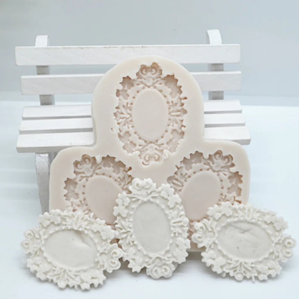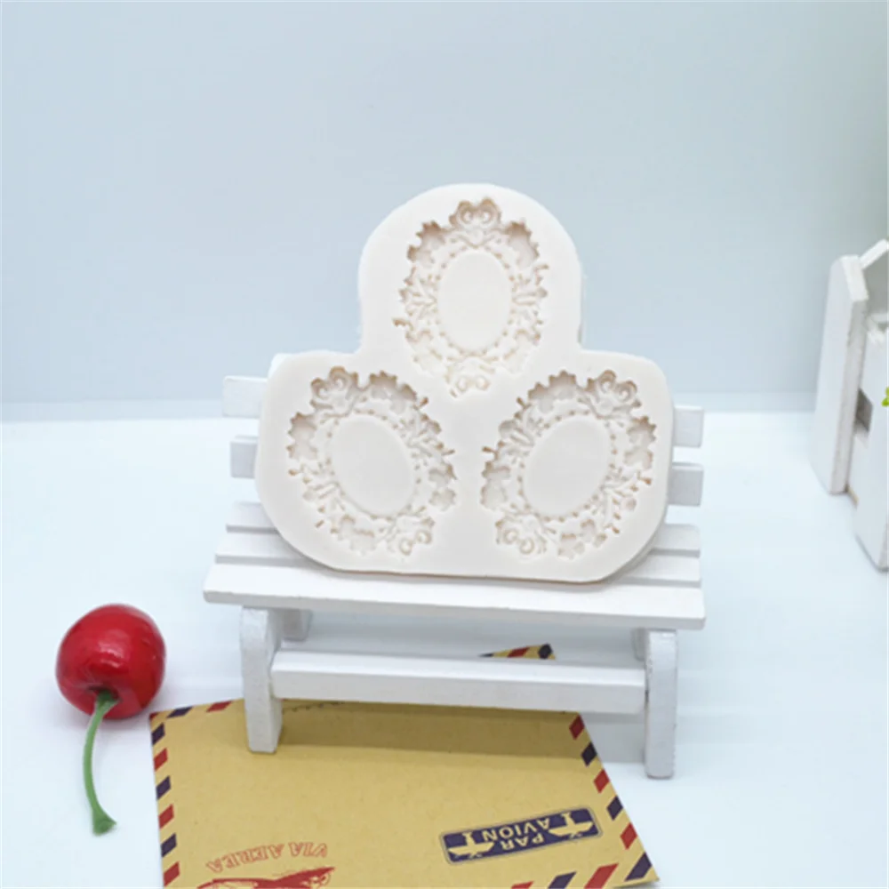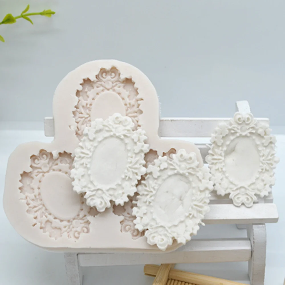 Креативная винтажная рама для зеркала, 3 шт., форма для помадки, инструменты для украшения торта, силиконовая шоколадная форма FM112