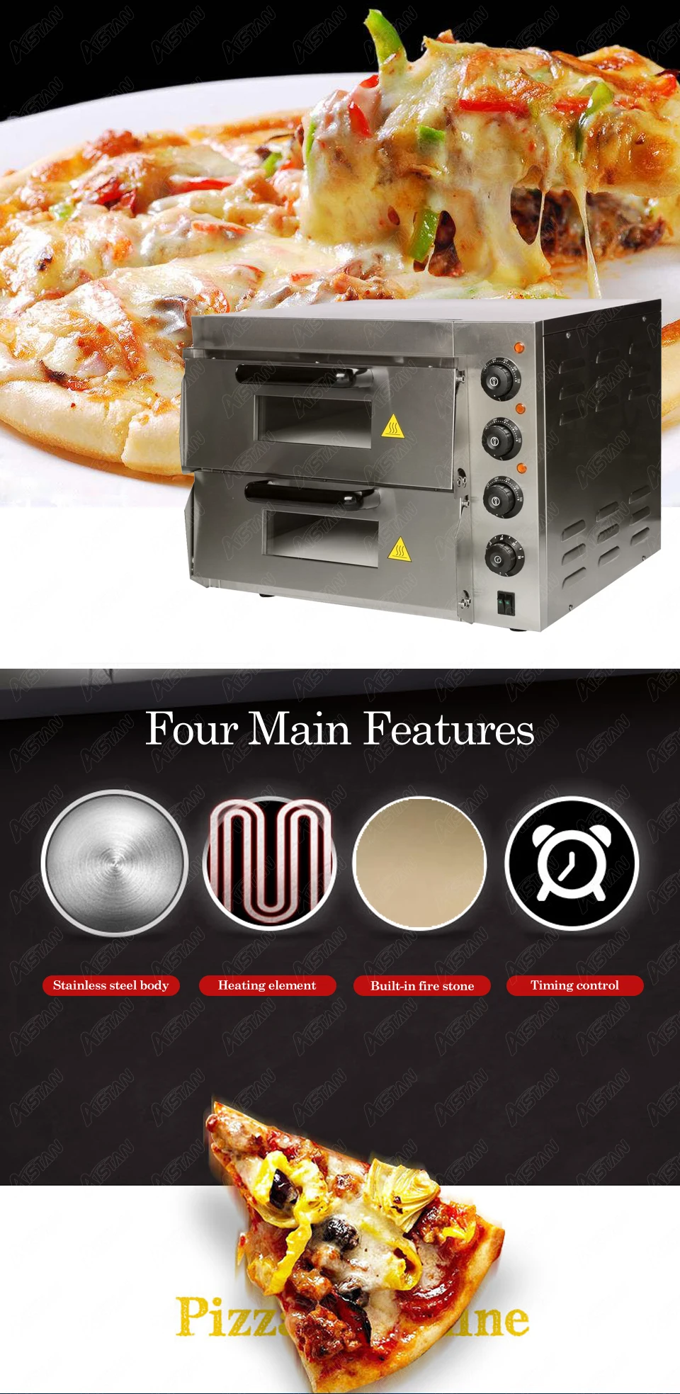 Электрический таймер термостат каменная печь для выпечки из нержавеющей стали двухслойная пекарная печь Коммерческая кухонная печь для пиццы
