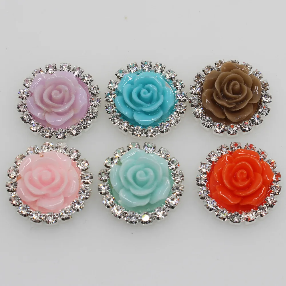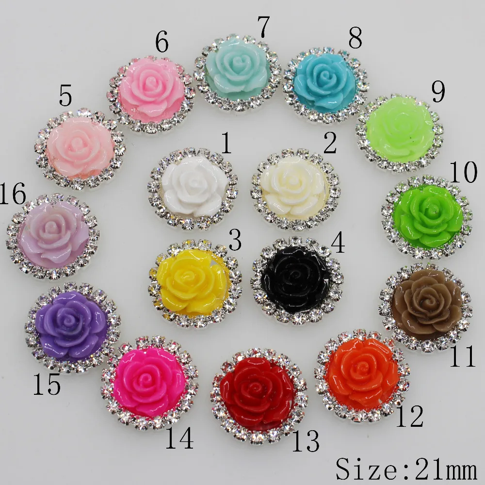 10 шт./лот 21 мм розы из смолы горный хрусталь Кнопка Flatback смешанные цвета для рукоделия декоративные кнопки