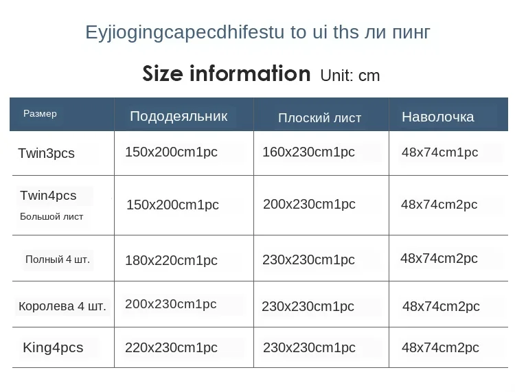 1. Допускается погрешность в 1-4 см (0,39-1,57 дюйма). 2. Этот комплект постельного белья не включает одеяло или наполнение. 3. Способ доставки продавца может быть отслежен, вы можете выбрать этот способ доставки с уверенностью. Мы выберем подходящий способ доставки на основе вашего адреса. Если вы хотите указать способ доставки, пожалуйста, свяжитесь с нами. 4. Из-за различных мониторов цвет будет отличаться, поэтому фактический цвет, полученный, должен превалировать.