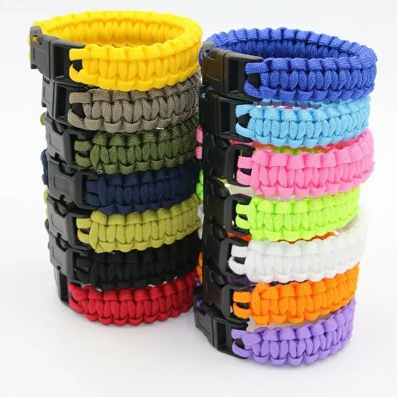 Паракорд Браслет выживания необходим для всех кемпинга, на открытом воздухе и в дикой природе приключений. Браслет для выживания Paracord увеличивает вероятность выживания, предоставляя вам доступные ресурсы. Аварийный комплект или снаряжение, которое вы можете взять с собой, не упаковывая тяжелые предметы или беспокоясь о том, что он будет потерян, как вы имеете его на вас в любое время. Браслет для выживания, плетеный из парашютного шнура с пластиковой пряжкой. Вязаный до 3,0 ~ 3,2 м Паракорд, который может быть использован в чрезвычайной ситуации или упаковки, и т. Д. Идеальный аксессуар для кемпинга, катания на лодках, охоты, походов и других видов активного отдыха. Прочность на растяжение Паракорда до 110 кг. Стильное украшение в повседневной жизни.
