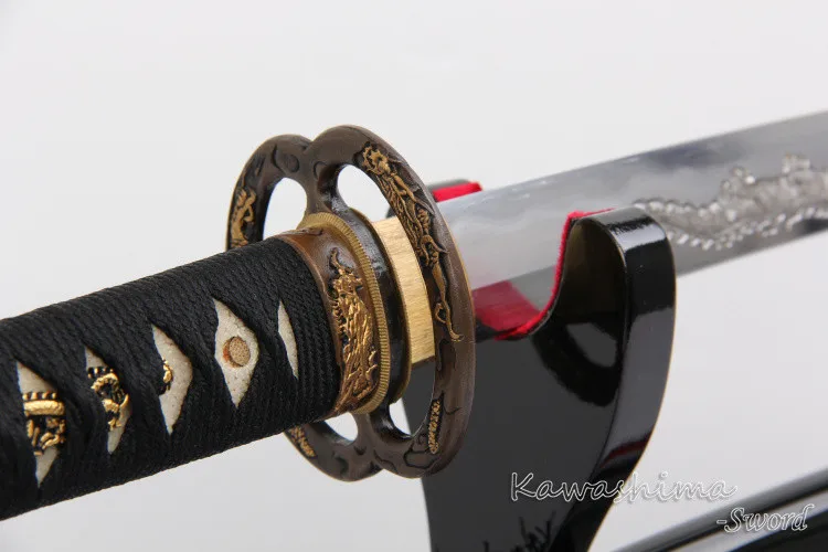 Форма лезвия и прочность в соответствии с японскими традиционными методами строительства, он изготовлен из Sanmai + 1095 стали, и формируется тысячами ручной ковки, специальная глина применяется к лезвию, И Нагрейте лезвие при температуре 750 градусов по Цельсию, чтобы создать настоящий Хамон. Этот процесс будет производить твердый край и мягкую заднюю часть после закалки воды. И согнутая Катана самостоятельно образуется через закалку, лезвие также проходит полировку через множество проходов вручную, с точечными линиями, острым краем бритвы и тонкой прозрачной линией закаления.