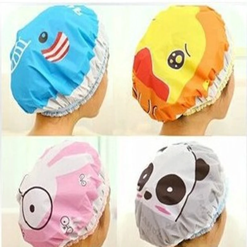 Мультфильм животных Душ крышка ПВХ многоразовые волосы салон ванная комната продукты водонепроницаемый эластичный банный колпачок для женщин принадлежность для купания