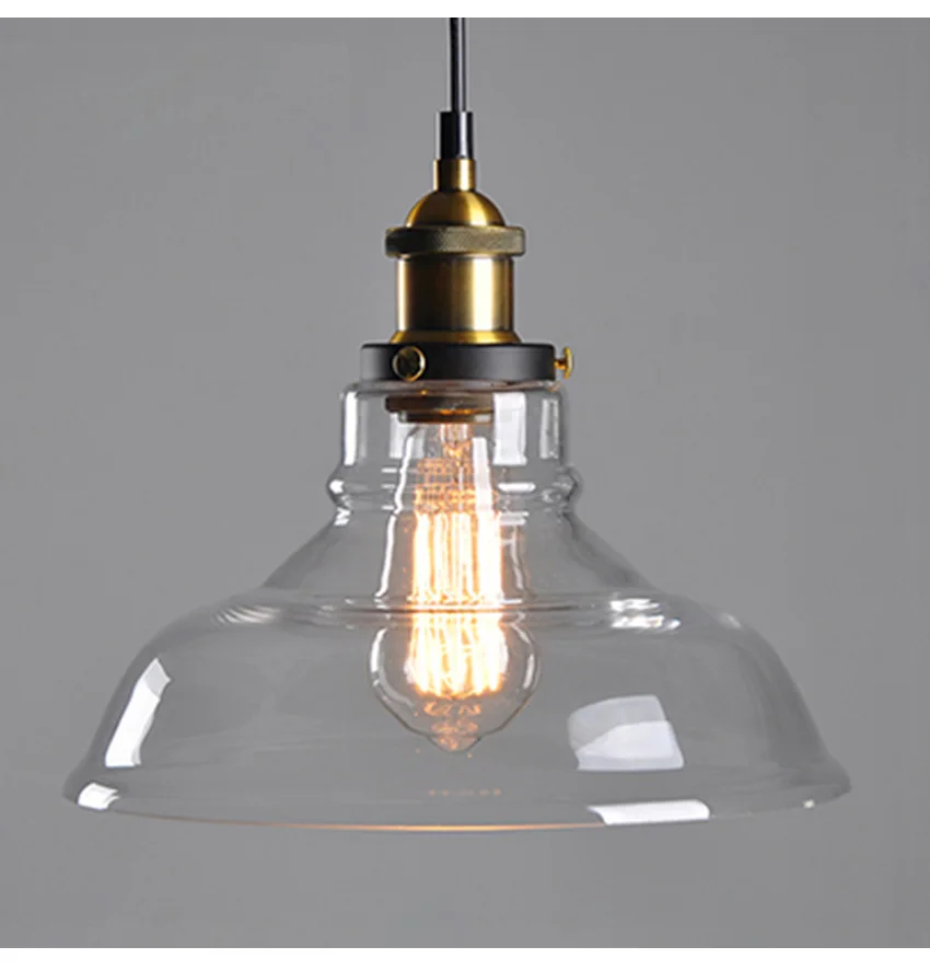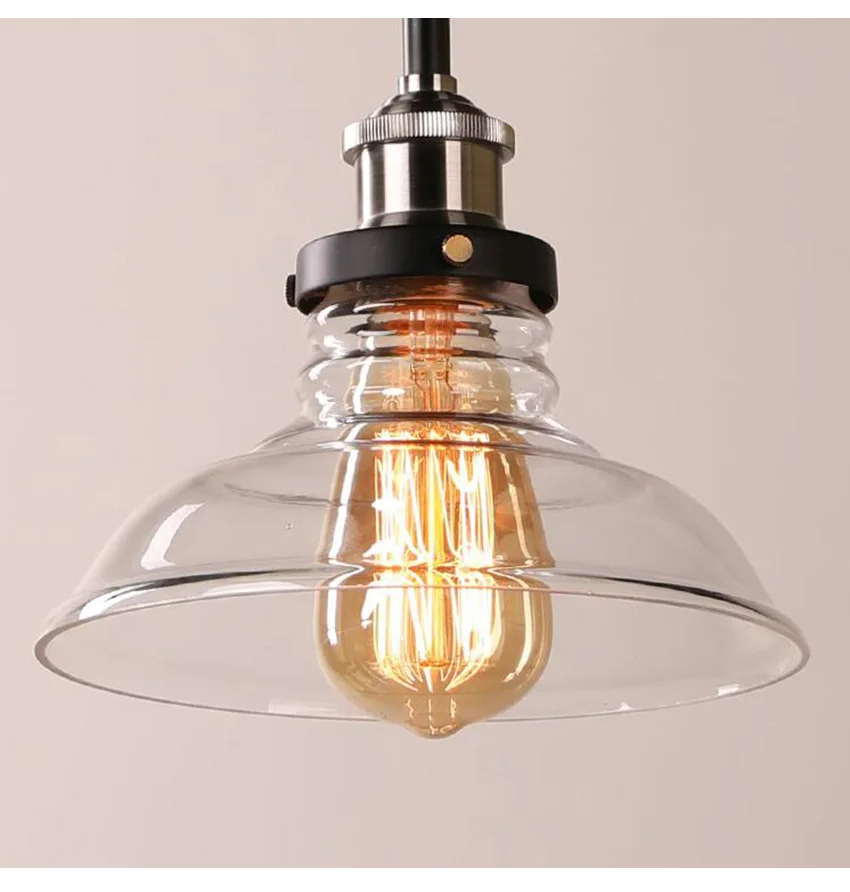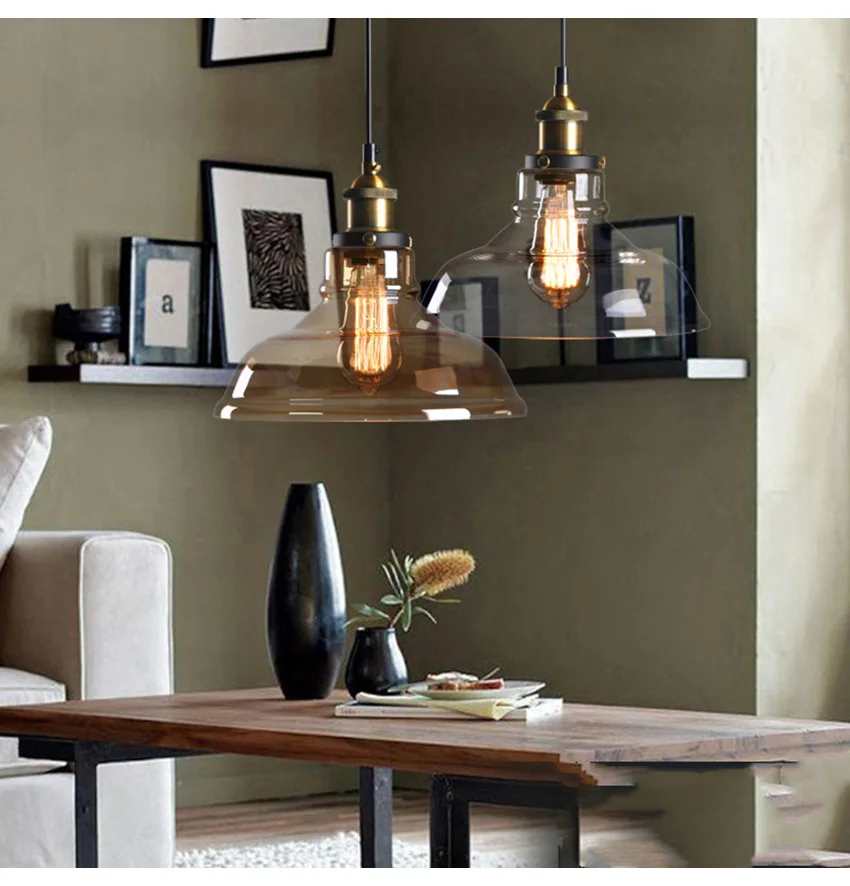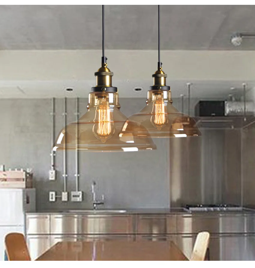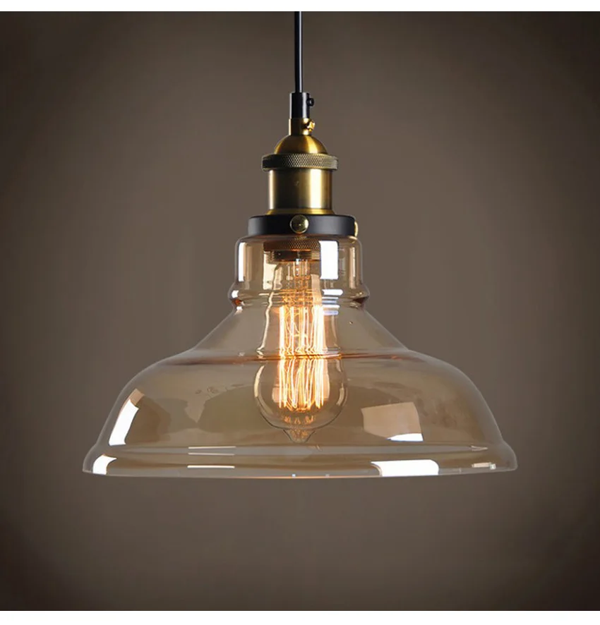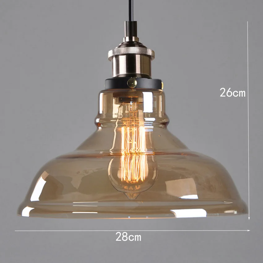 Американский деревенский стеклянный подвесной светильник в стиле ретро диаметром 28 см, прозрачный цвет, Янтарное цветное стекло стеклянный абажур, креативные промышленные лампы для бара и ресторана