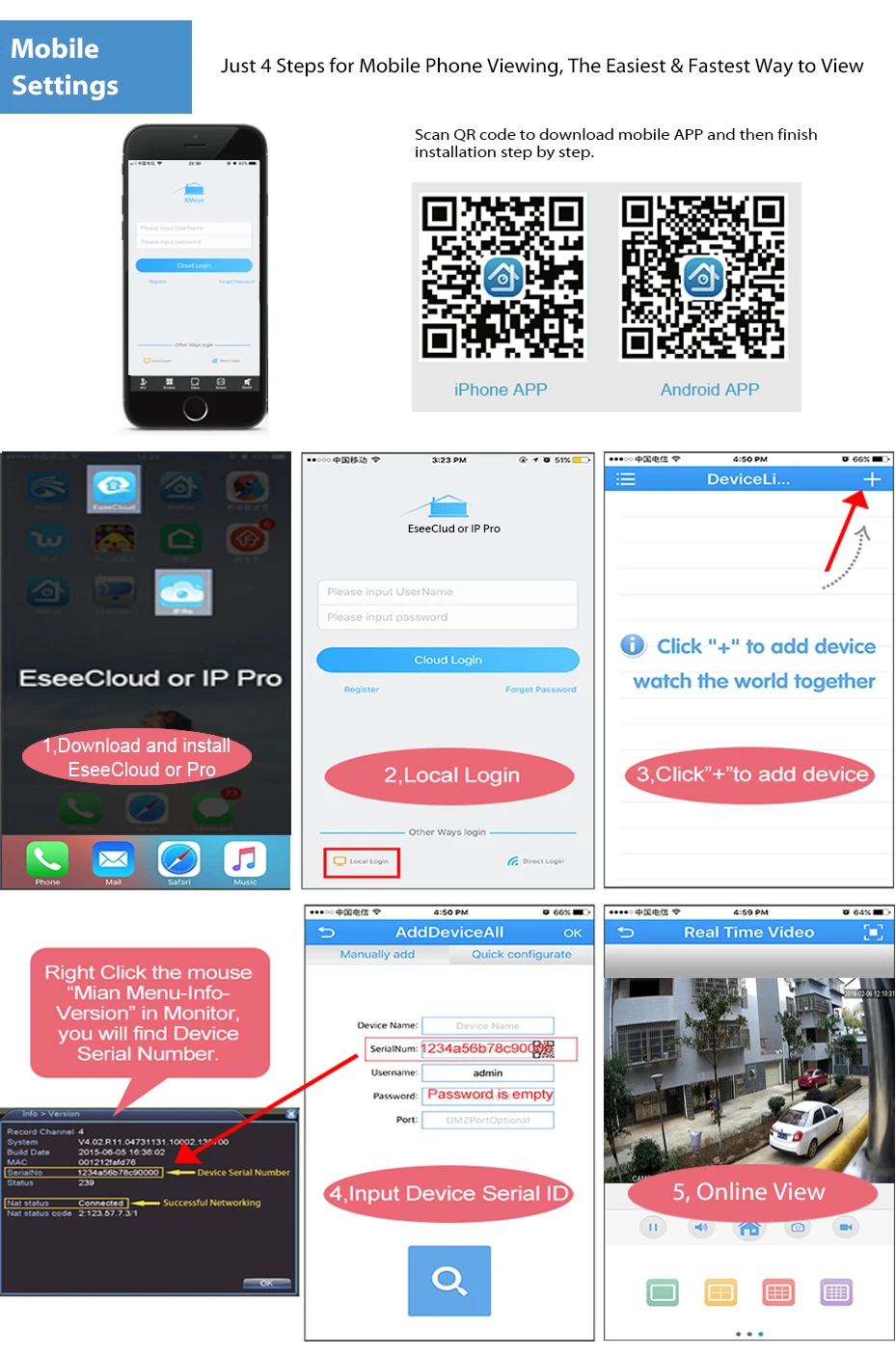 Исходя из P2P (сверстников) технологии, поддержка plug-and-play установка. Доступ к ip-камере через веб-интерфейс через Интернет-проводник, также поставляется с бесплатным приложением для смартфона (Android и iPhone) для удаленного просмотра из любой точки