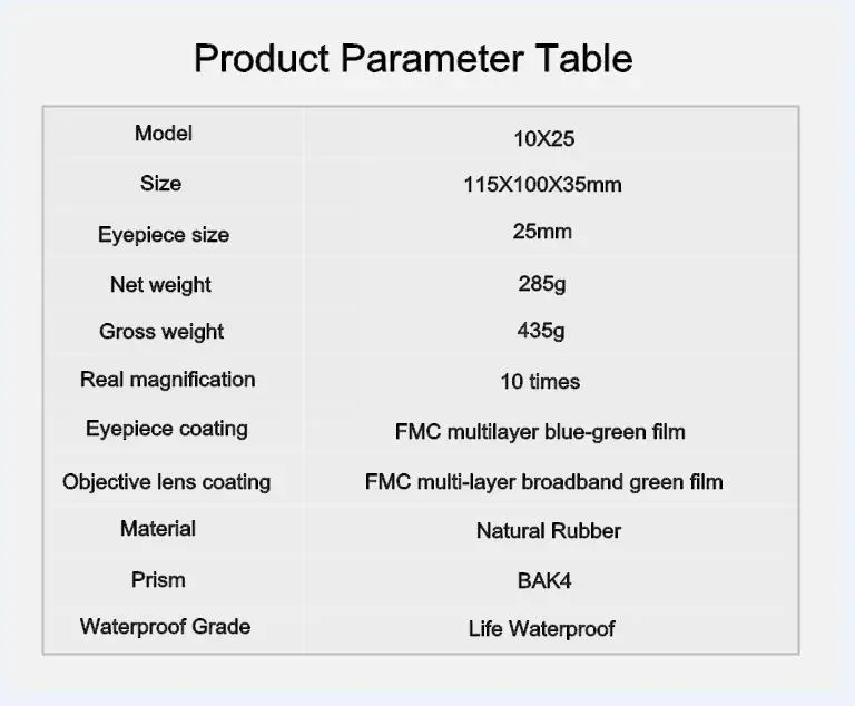 Профессиональный бинокль 10x25 BAK4 Призма Бинокулярный Портативный охотничий телескоп скопический Монокуляр бинокль Ночное видение