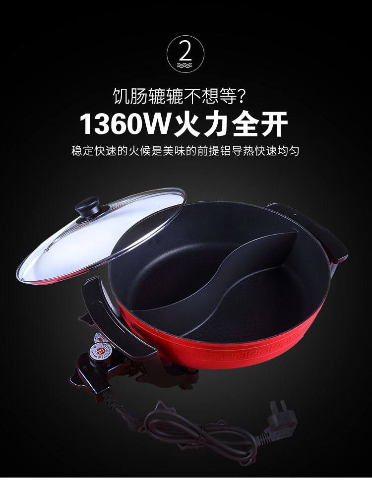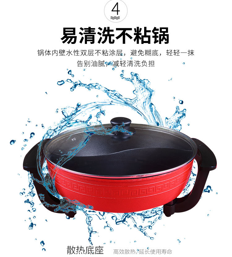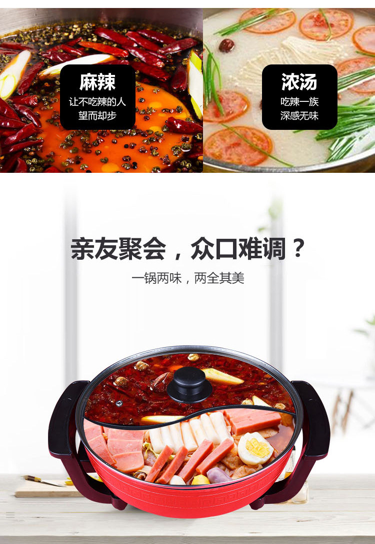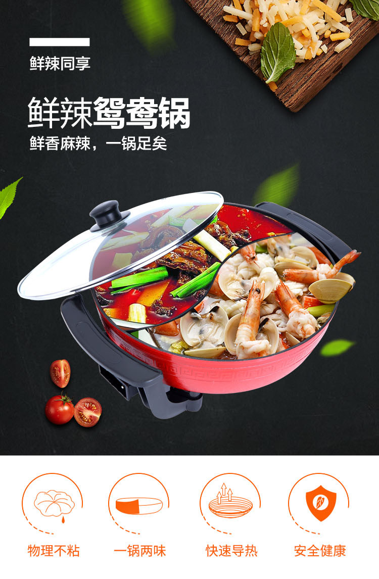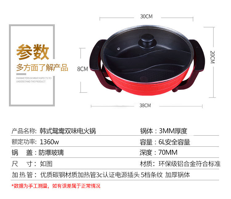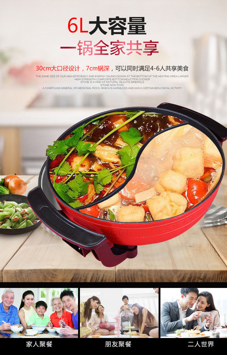 Многофункциональный бытовой электрический горячий горшок Yuanyang кастрюля Корейская электрическая сковорода 6L большая емкостьYuanyang интегрированное литье вкладышей для углубления тела горшка 6л большая емкость Электрический/горячий горшок Функция: на пару, жареное тушеное мясо цвет: красный горшок спецификация: 31 см и выше