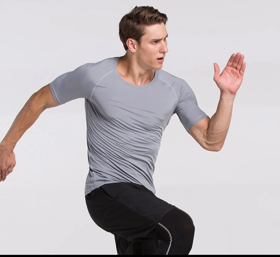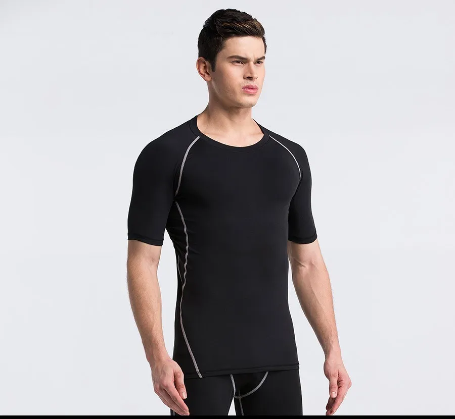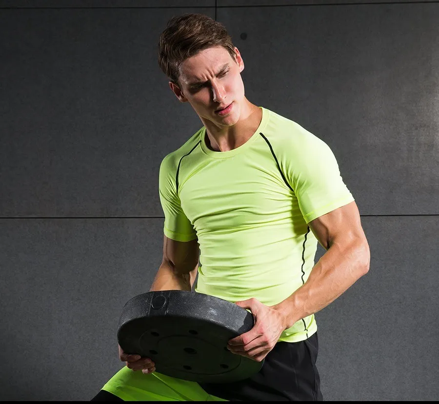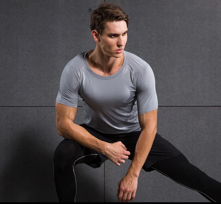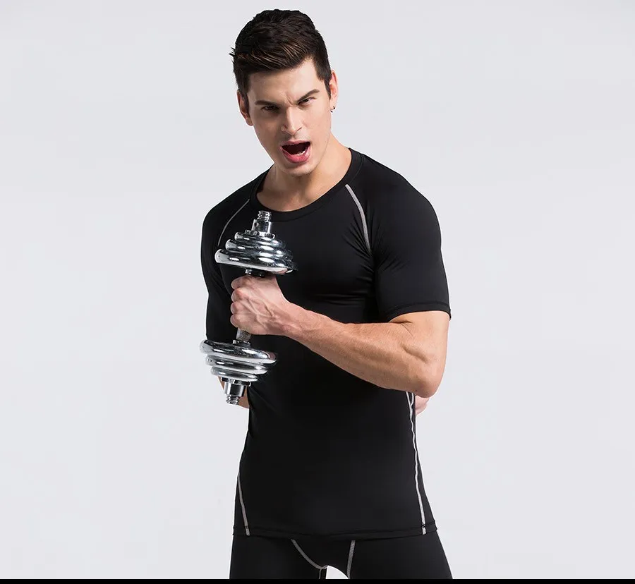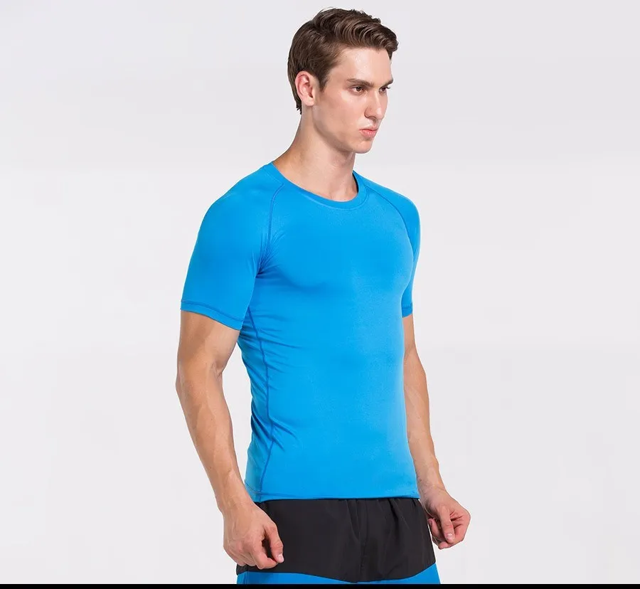 OEM мужские компрессионные рубашки с коротким рукавом, базовый слой, трико для фитнеса, велоспорта, бега, быстросохнущие дышащие спортивные футболки из спандекса