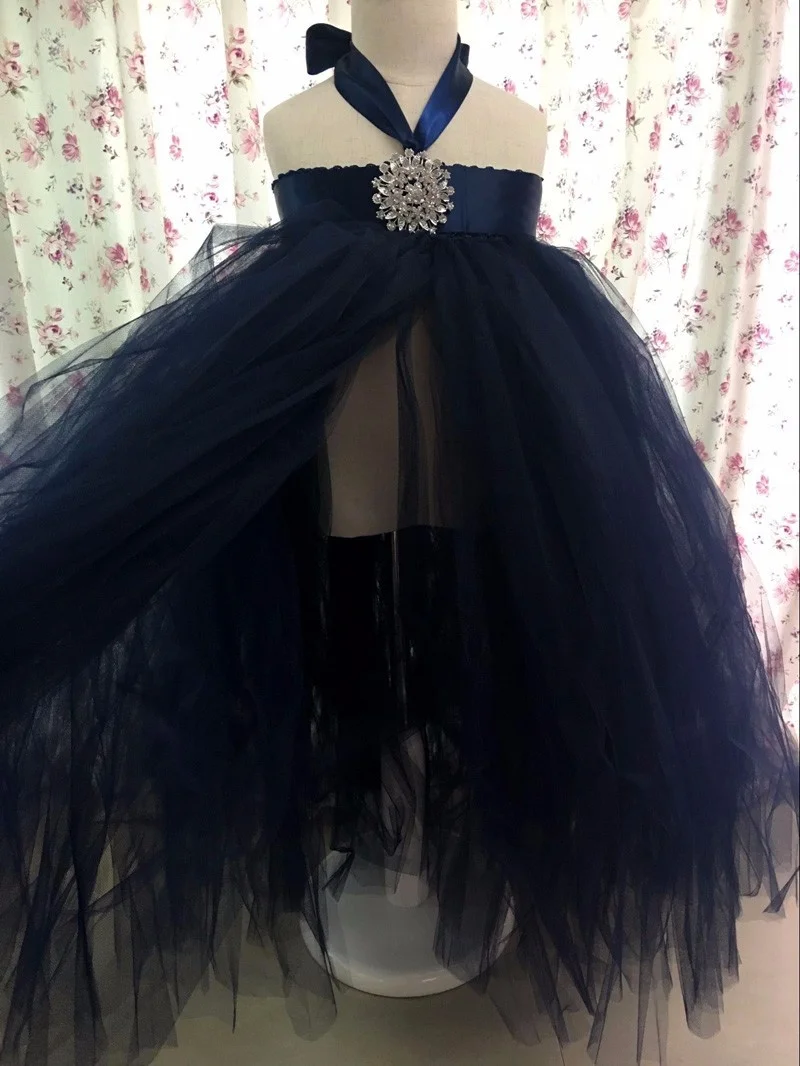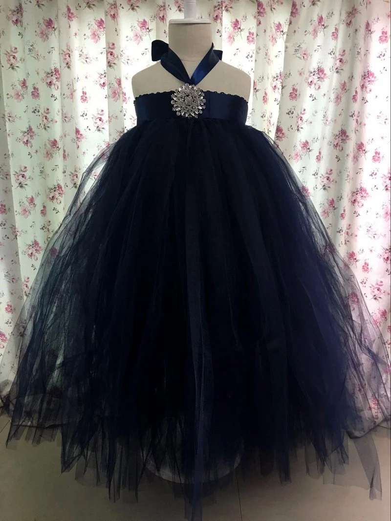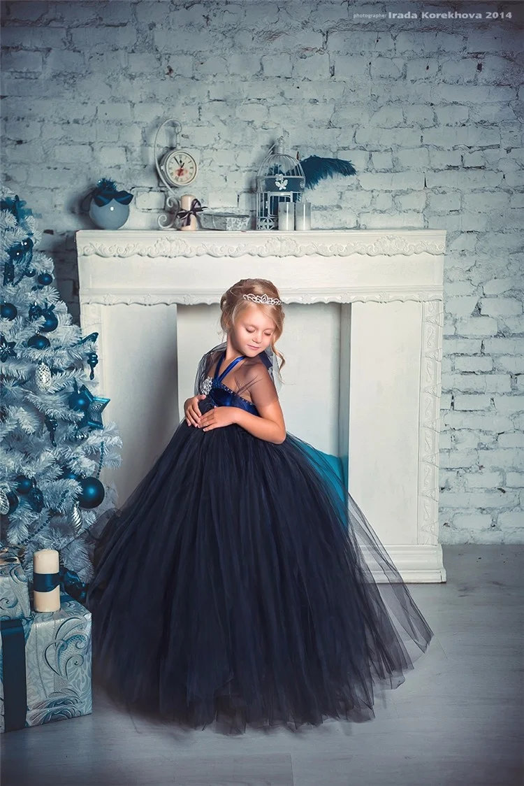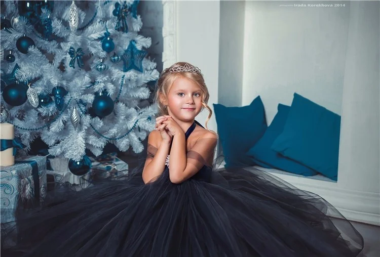 Детское, нарядное, пышное платье из тюля для девочек 1-14 лет, цвета: черный/слоновая кость/темно-синий, платье на праздник