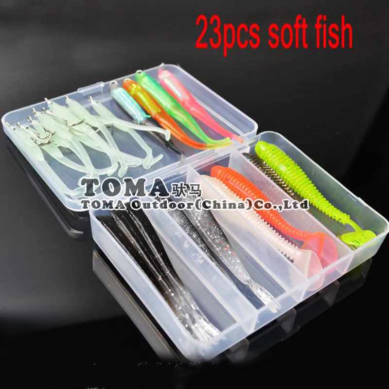 TOMA Hot! 23 шт./лот, многоцветная приманка для рыбалки, смешанные цвета, Мягкая приманка, набор, воблер, рыболовные снасти, pesca iscas artificias