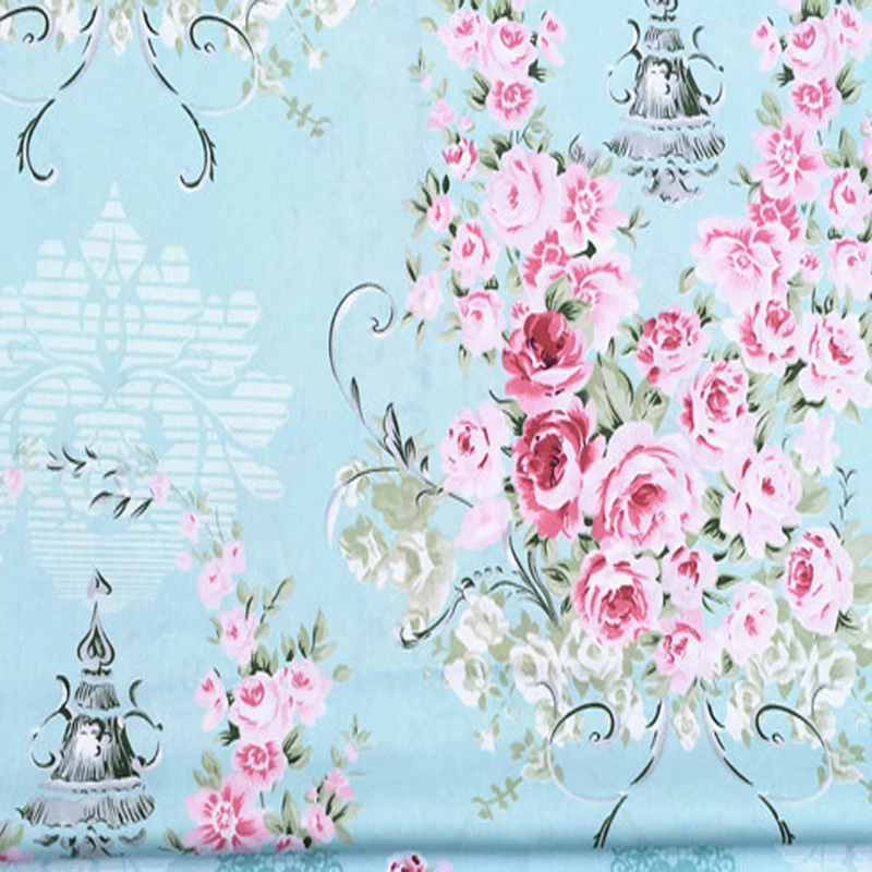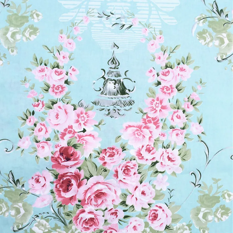 Красивые 50x160 см синий (с Цветущими Розами и цветочным принтом 100% хлопчатобумажной ткани Лоскутное детское постельное Тильда Ткань Лоскутная Ткань для шитья tecido с фатиновой юбкой и цветочным узором