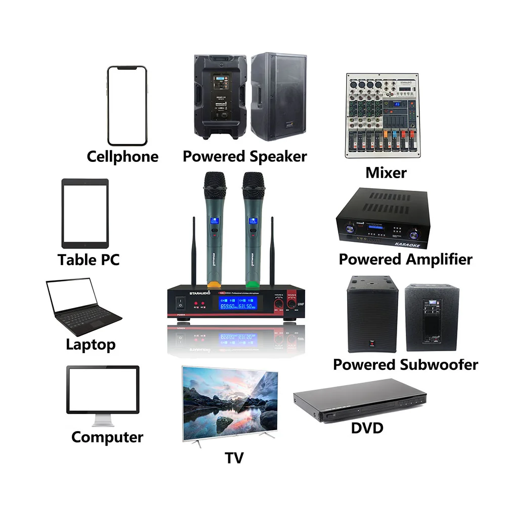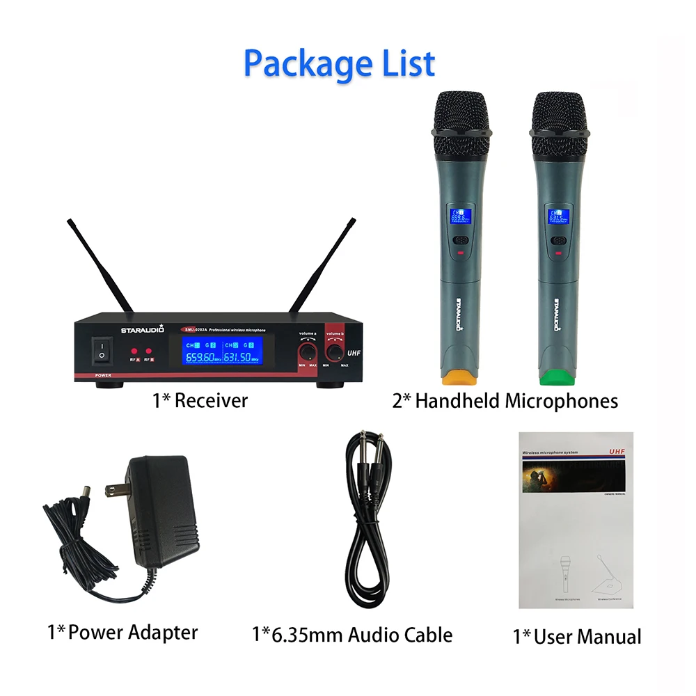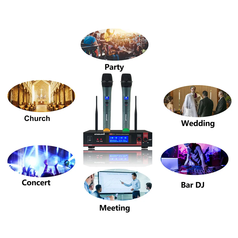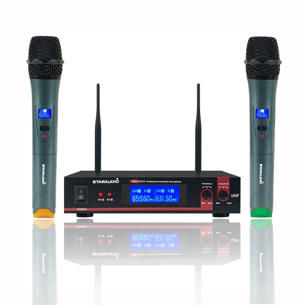 STARAUDIO 2CH беспроводной PA DJ сценический церковный клуб Караоке ручной UHF микрофон система микрофон для церкви поют песня Свадьба Вечеринка ночные клубы школа игра речь открытый Крытый SMU-0202A