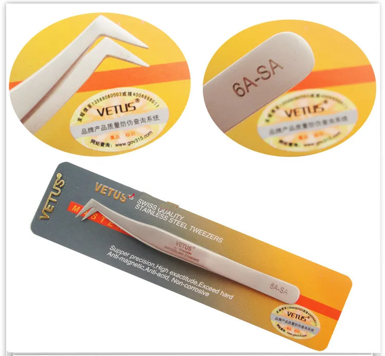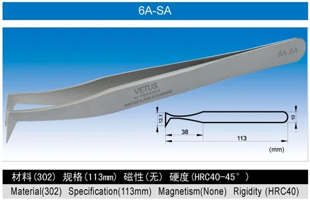Товар: пинцет 6A-SA Материал: нержавеющая сталь Количество: 1,2,5,10, шт/партия, пожалуйста, выберите необходимое количество Специальный: настоящий Пинцет «VETUS» Легкая ручка, легко работать с Использование: особенно для объемного крепления 3D-6D