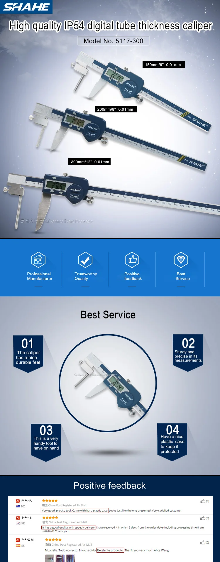 1. Закаленная рама из нержавеющей стали и измерительные челюсти 2. Относительный/абсолютный обмен измерений в любом положении 3. Стекло фиксированное grib, стабильная и высокая точность 4. Быстрый дисплей измеренного значения на ЖК-экране 5. С выключателем питания и автоматическим выключением питания для Опции 6. Водонепроницаемый IP54 7. Три функциональных ключа 8. С мостом глубины 9. Нулевая Настройка в любом положении 10.мм/дюйм система измерения преобразования 11. Измерение толщины трубки