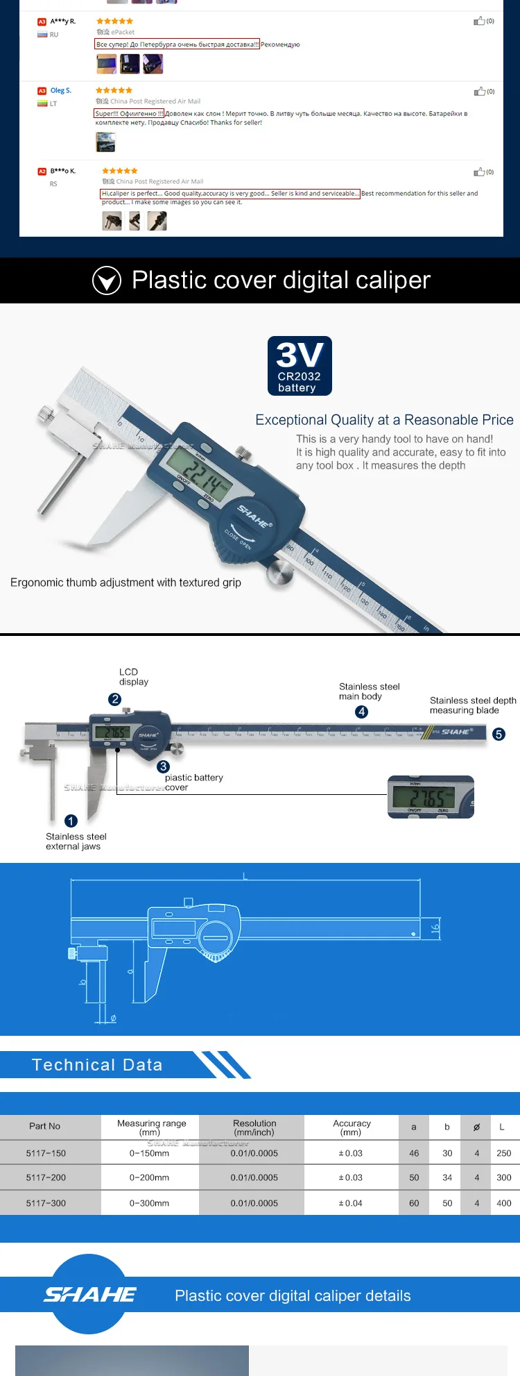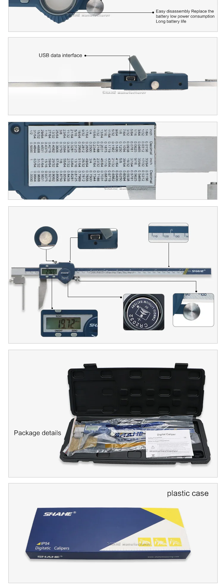 Диапазон измерения: 0-300 мм Разрешение: 0,01 мм/0,0005 дюймов Точность: ± 0,04 мм Батарея Тип: 3V литиевая CR2032 Батарея Тип: ширина голенища: измерение емкостный сенсорный экран сетка преобразователь: стеклянная фиксированная сетка защиты: IP54 Дисплей: ЖК-дисплей Выход данных: Да Батарея: 3 в CR2032 Функция: вкл/выкл, нулевой набор, дюймы/мм, Автоматическое включение/выключение, с блокировочным винтом