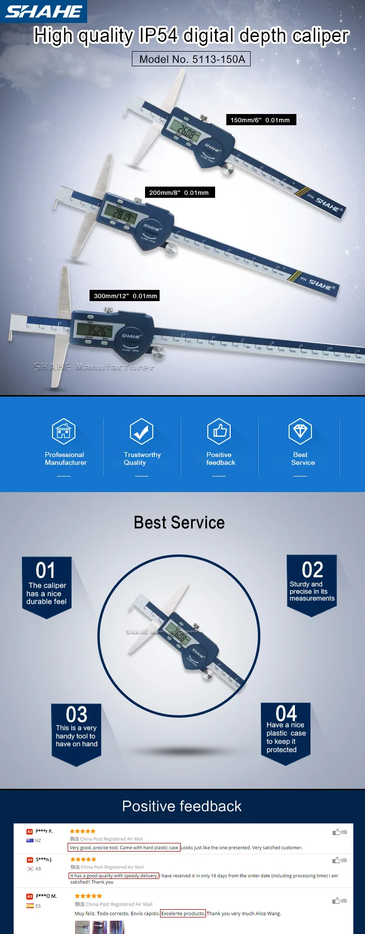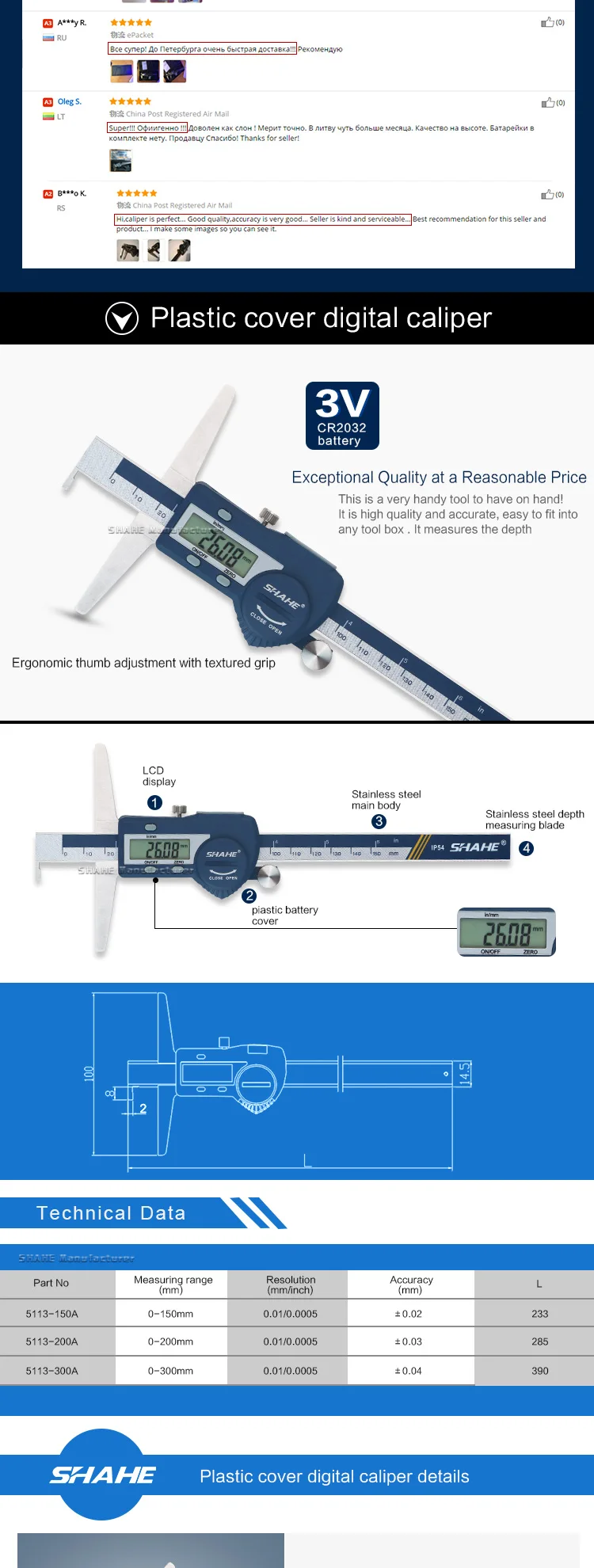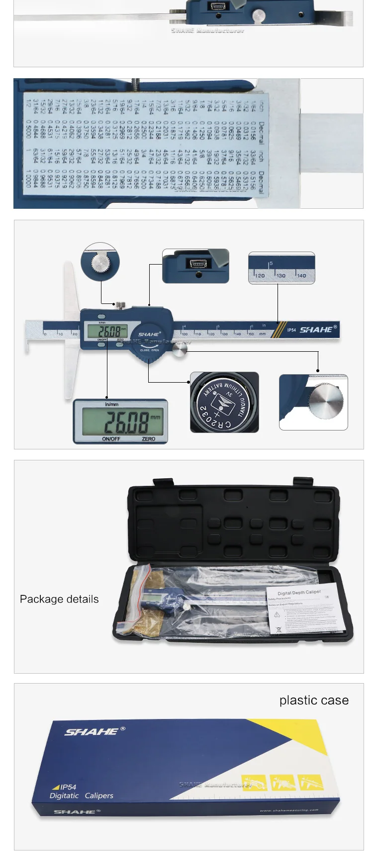 1. Закаленная нержавеющая сталь основная шкала и измерительные челюсти