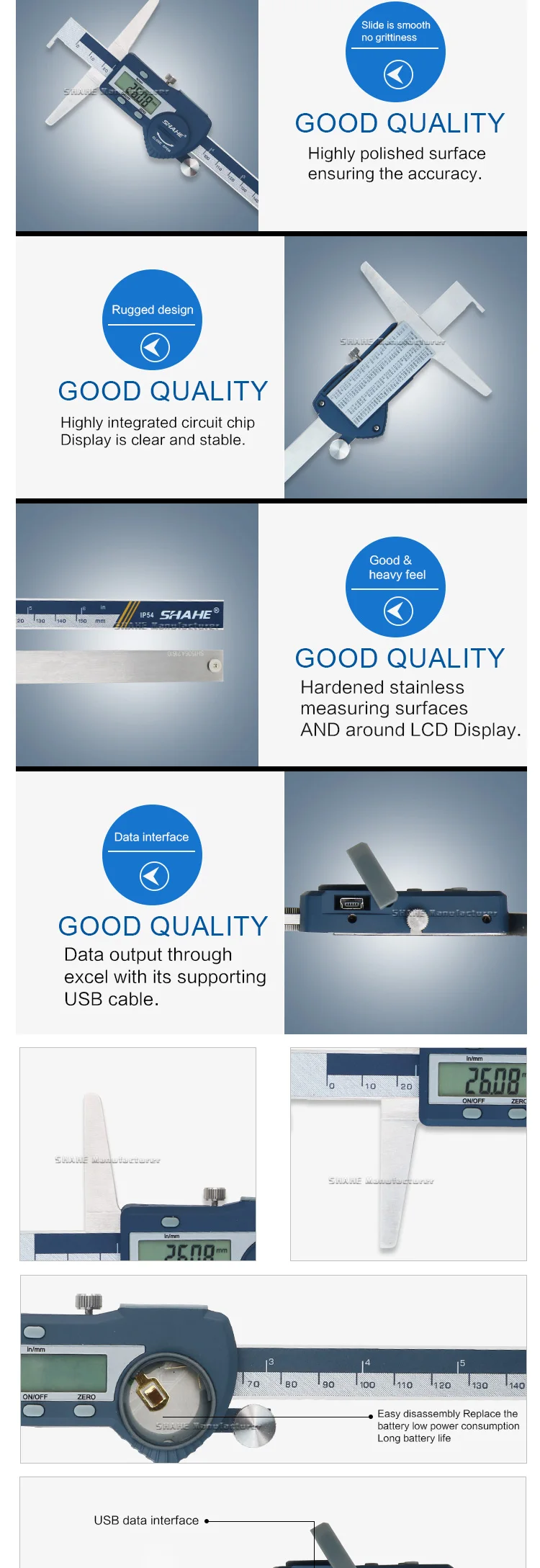 6. Три функциональные кнопки, с лезвием для измерения глубины, с интерфейсом USB